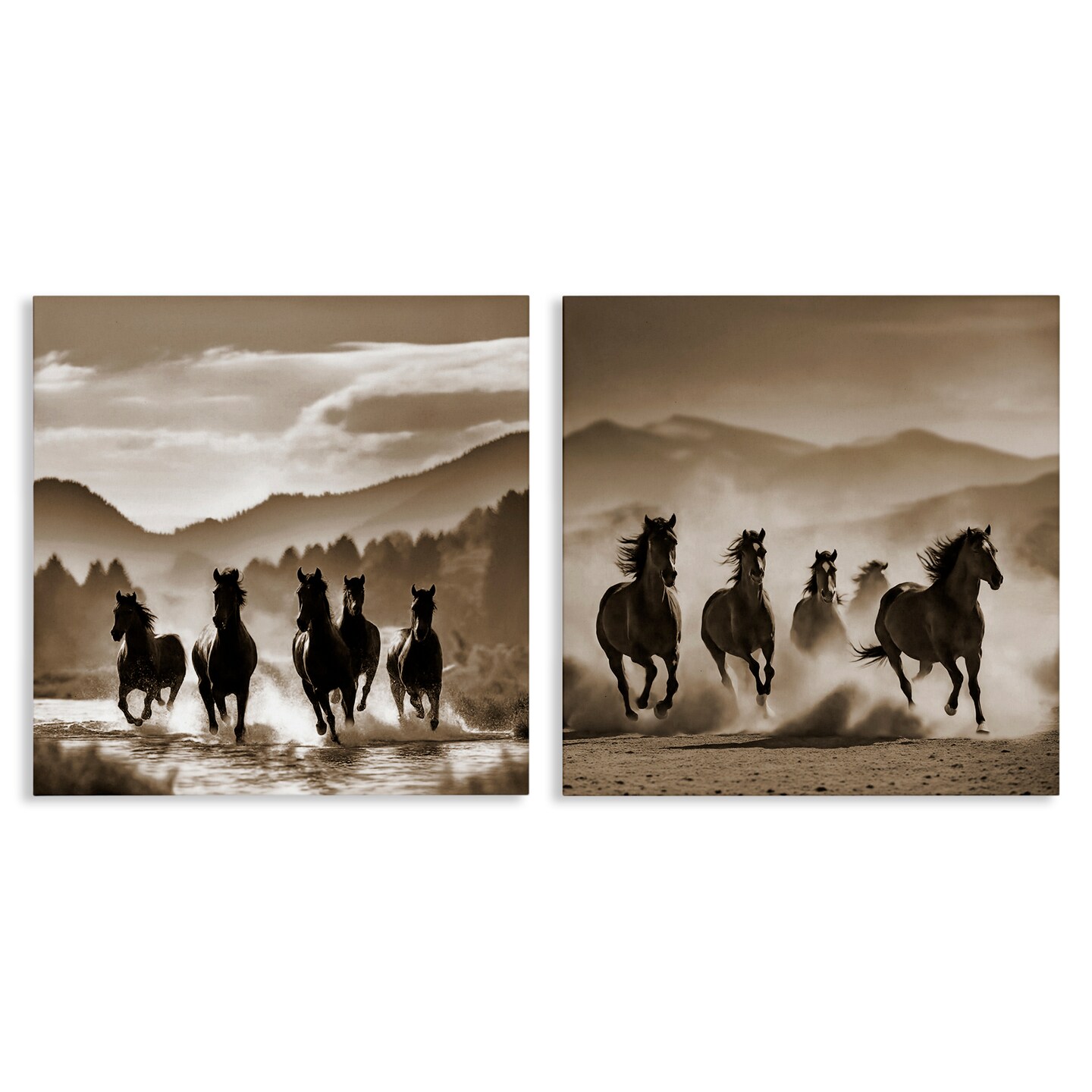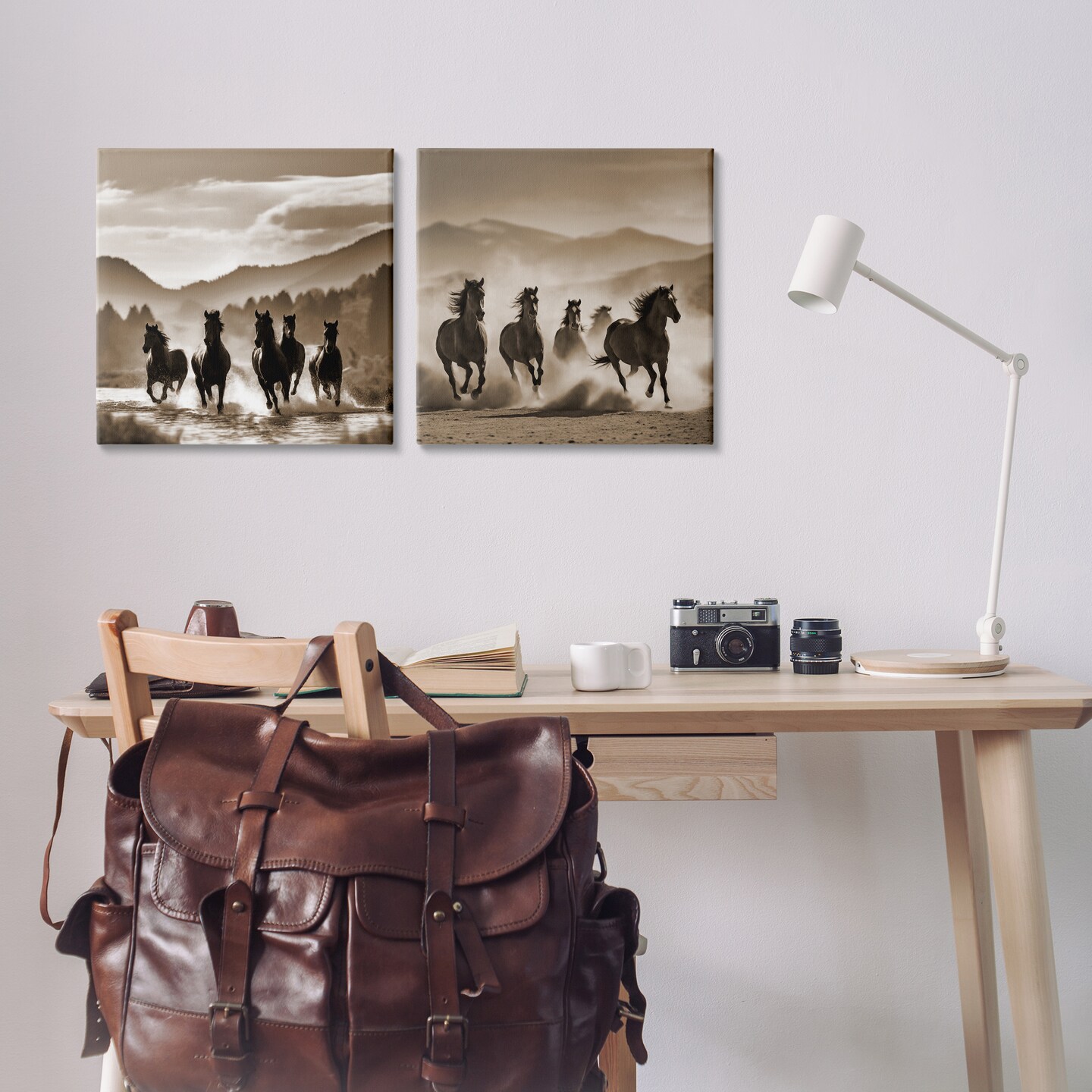 Stupell Industries Running Mountain Stallions 2pc Canvas Wall Art Set Design by Noah Bay