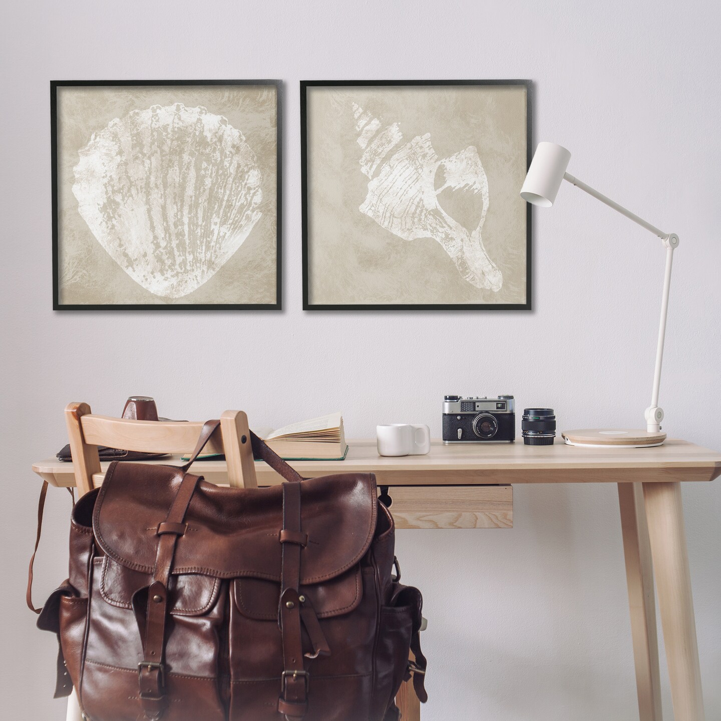 Stupell Industries Rustic Abstract Seashells 2pc Framed Giclee Wall Art Set Design by Carol Robinson
