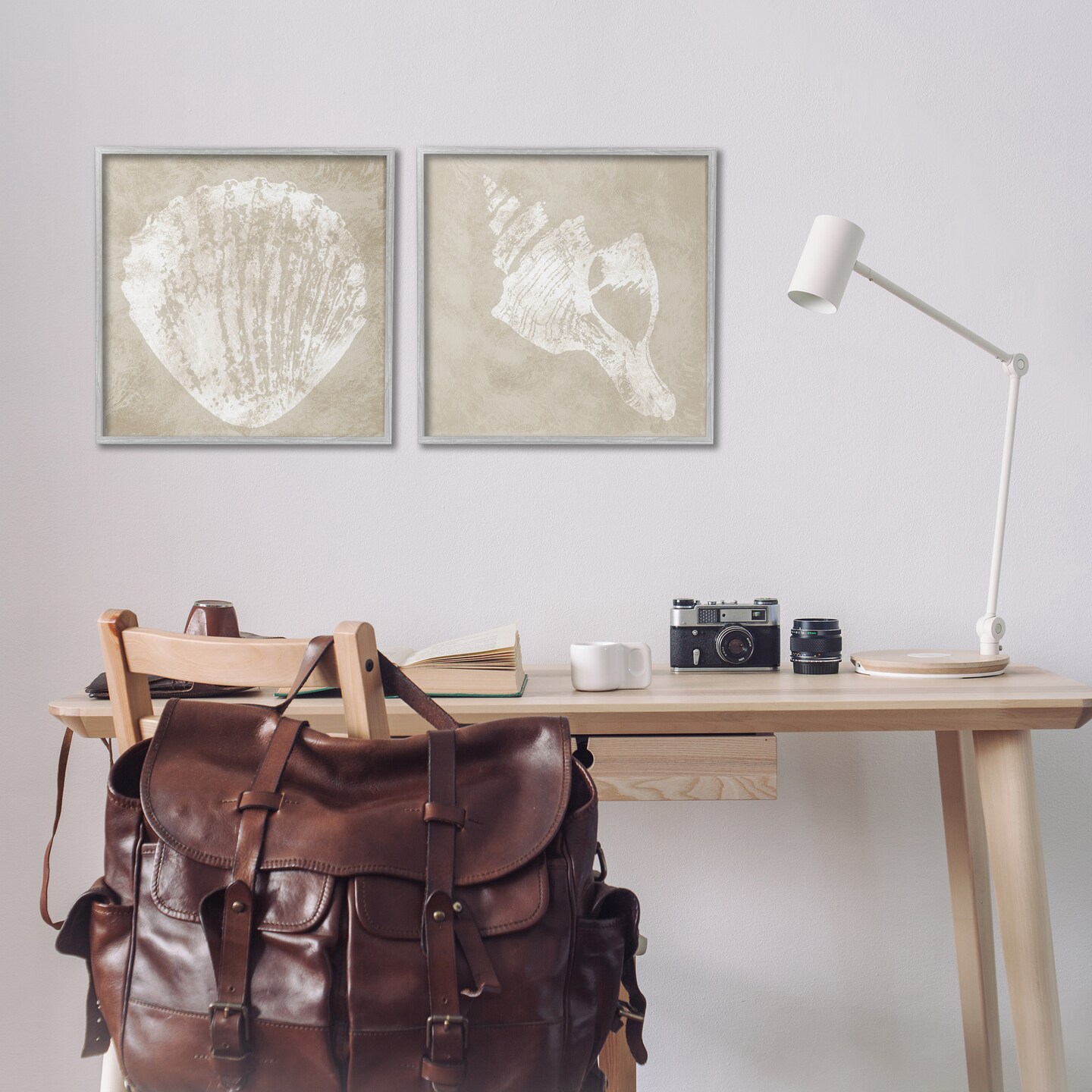 Stupell Industries Rustic Abstract Seashells 2pc Framed Giclee Wall Art Set Design by Carol Robinson