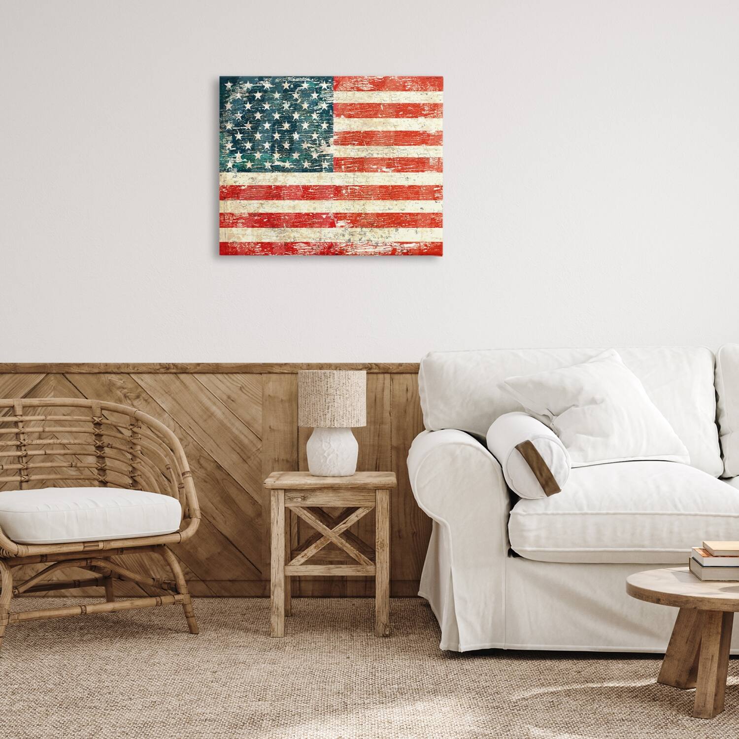 Stupell Industries Rustic American Flag Canvas Wall Art