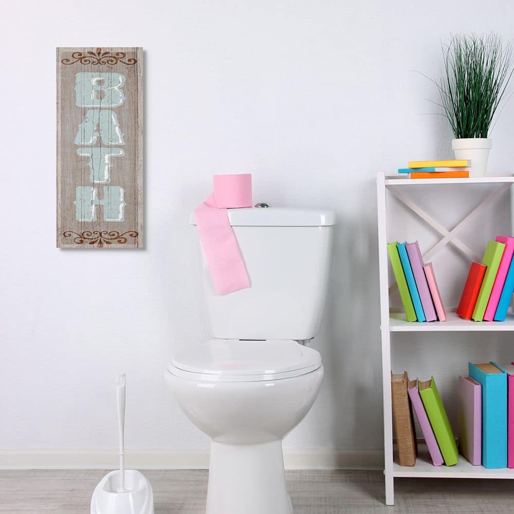 Stupell Industries Rustic Charm Bath Sign Blue Brown Family Bathroom Canvas Wall Art