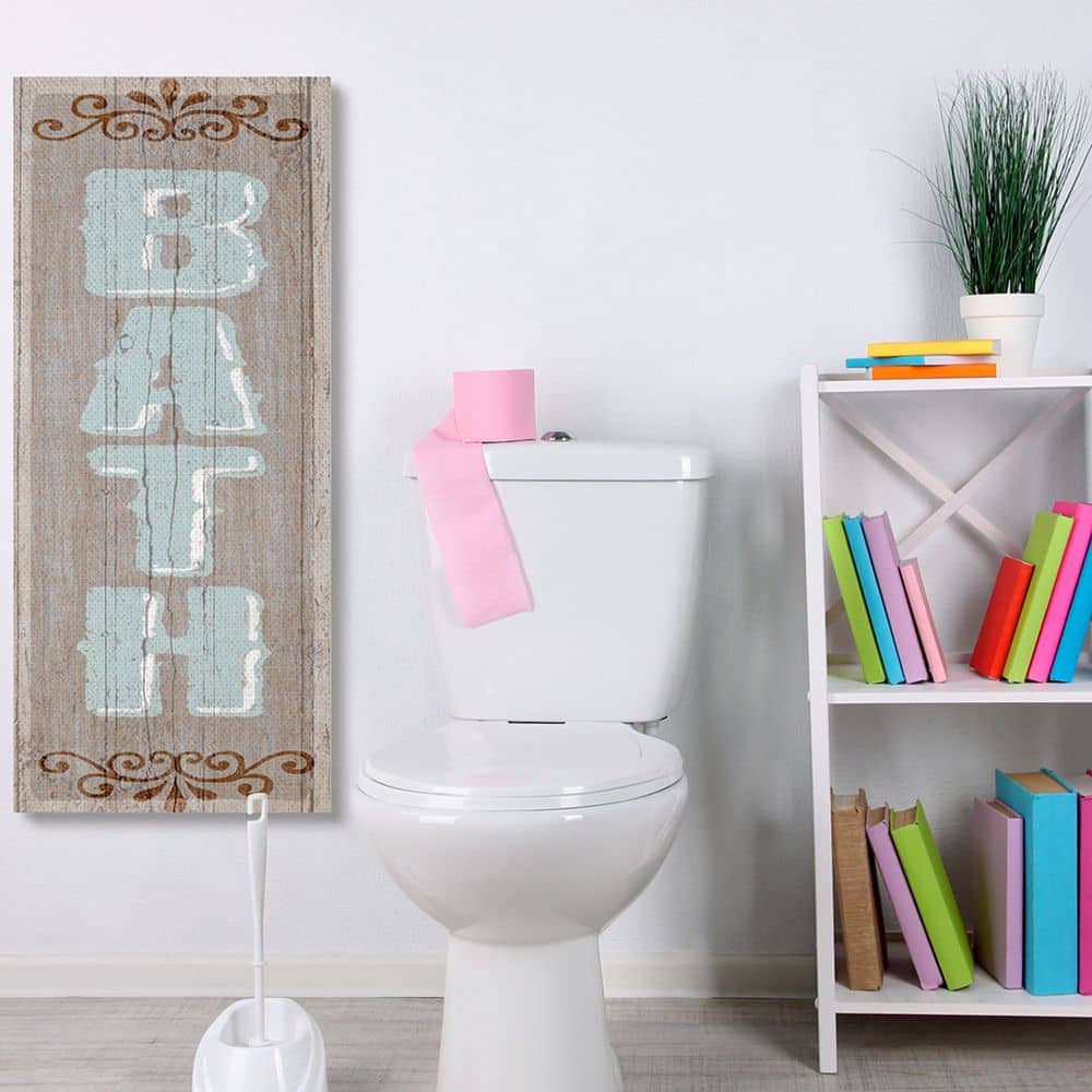 Stupell Industries Rustic Charm Bath Sign Blue Brown Family Bathroom Canvas Wall Art