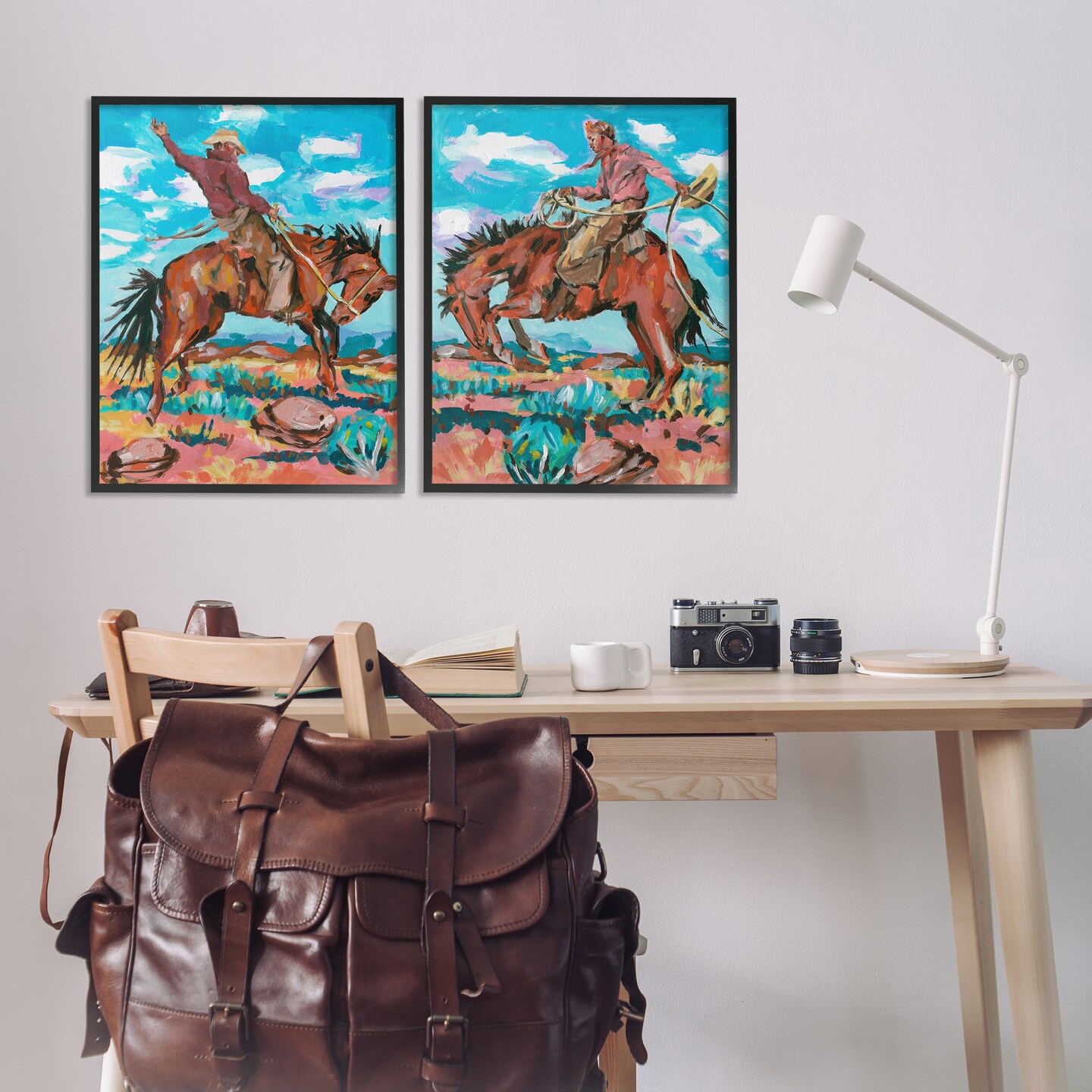 Stupell Industries Rustic Cowboys in Desert 2pc Framed Giclee Wall Art Set Design by Melissa Wang