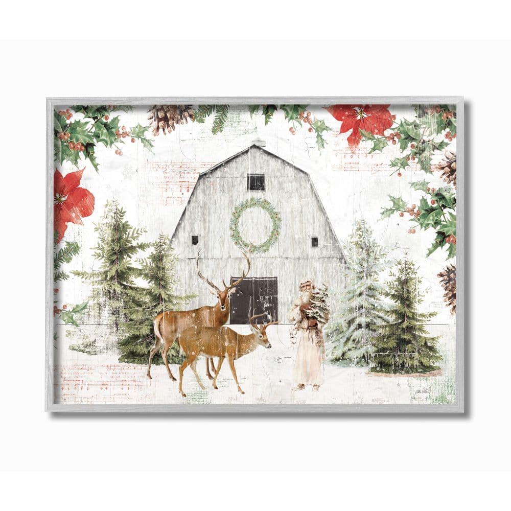 Stupell Industries Rustic Holiday Barn Animals Seasonal Christmas Winter Framed Wall Art
