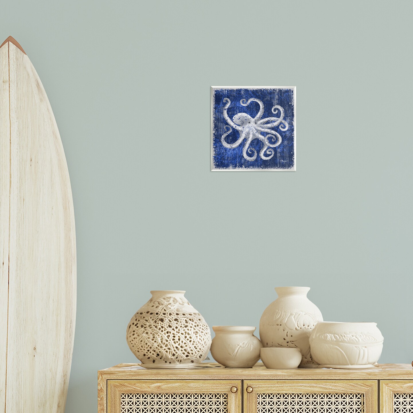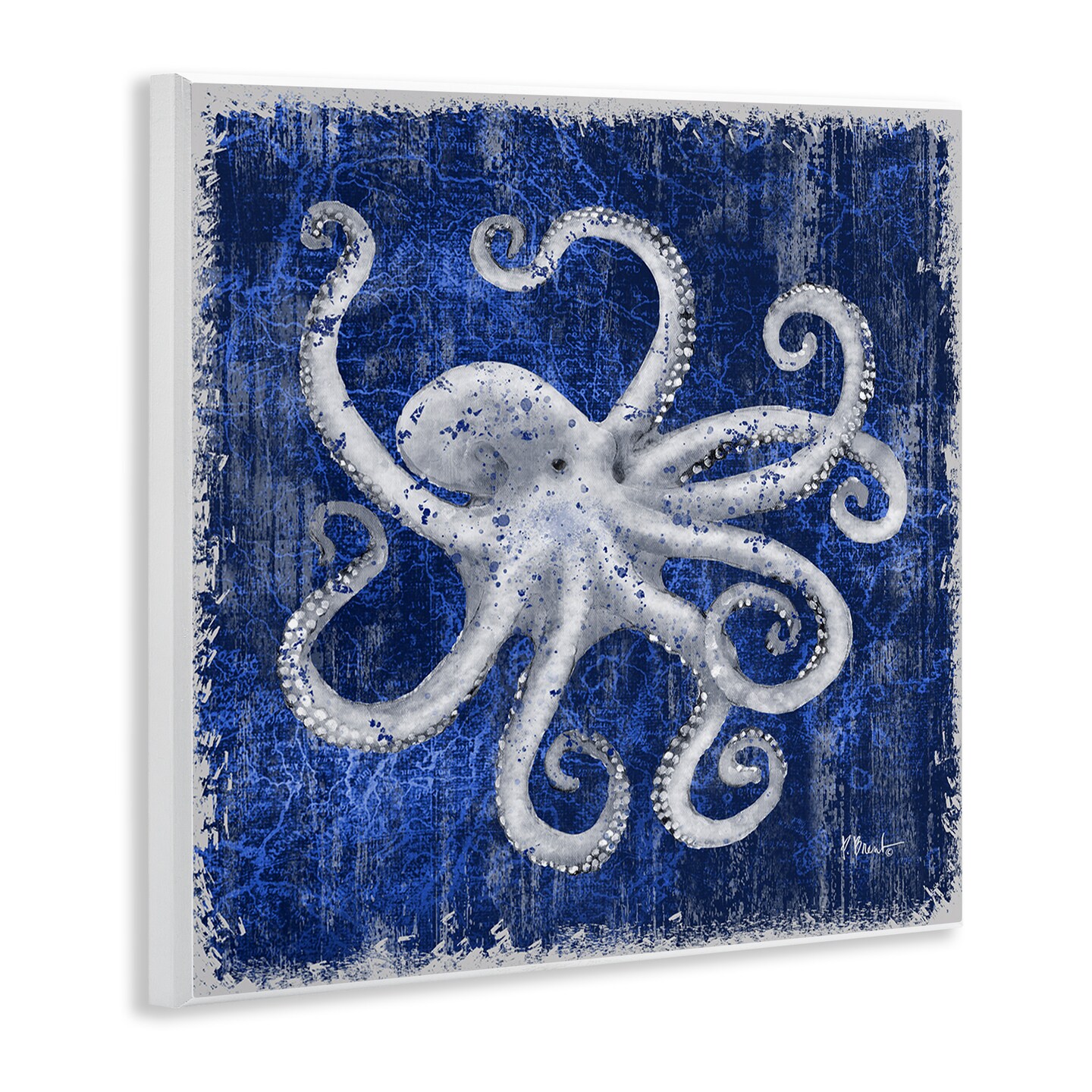 Stupell Industries Rustic Indigo Octopus Wall Plaque Art Design by Paul Brent