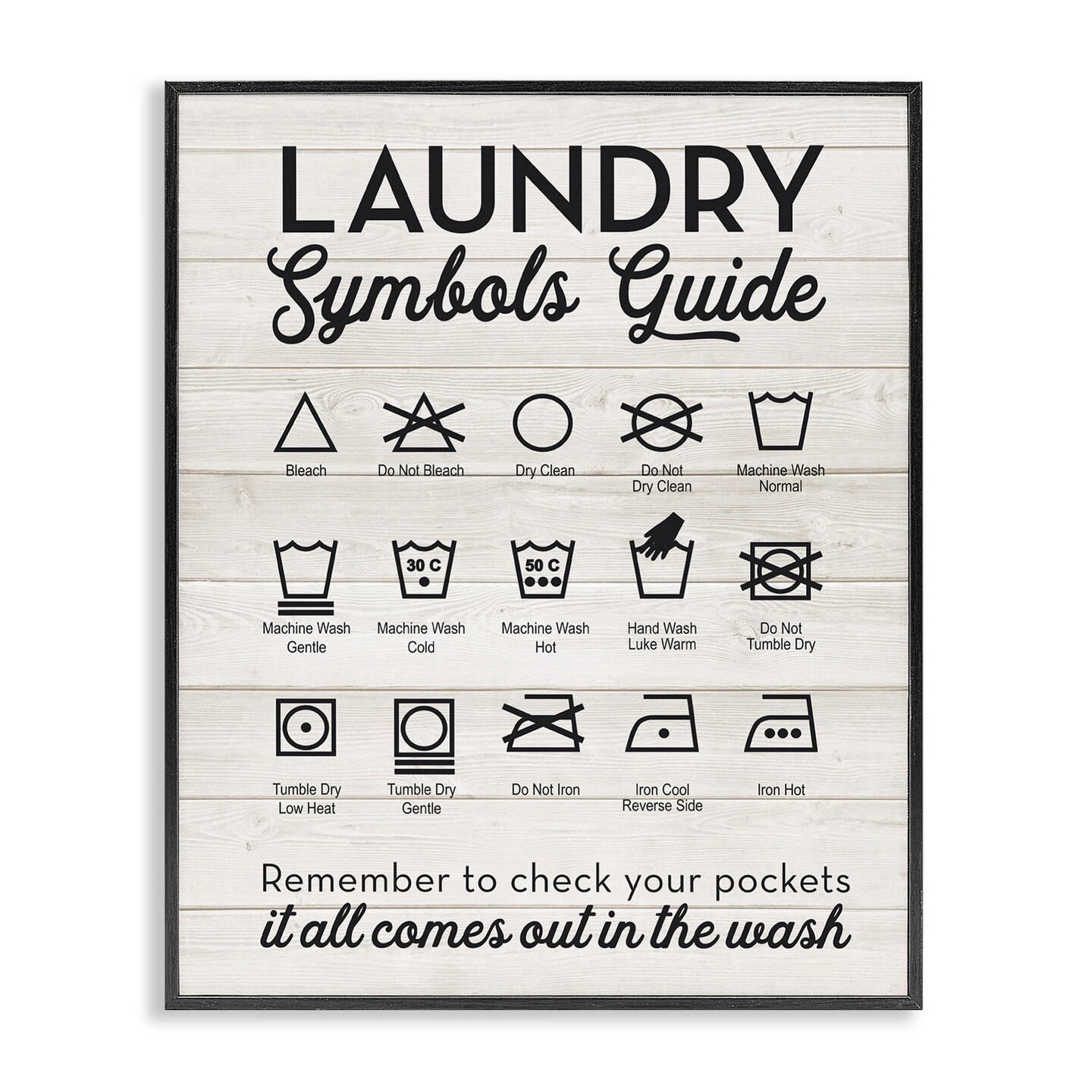 Stupell Industries Rustic Laundry Symbols Guide Framed Giclee Art