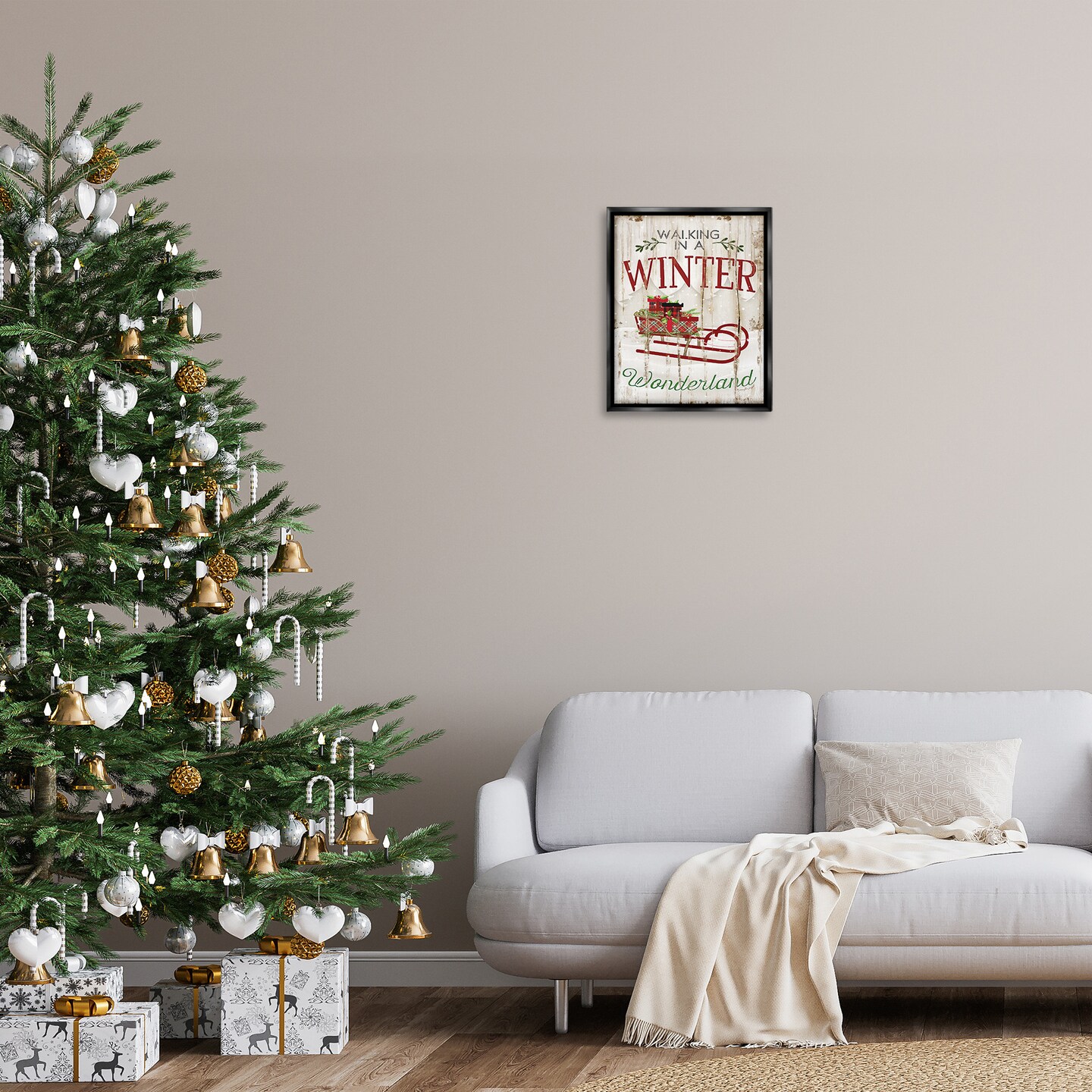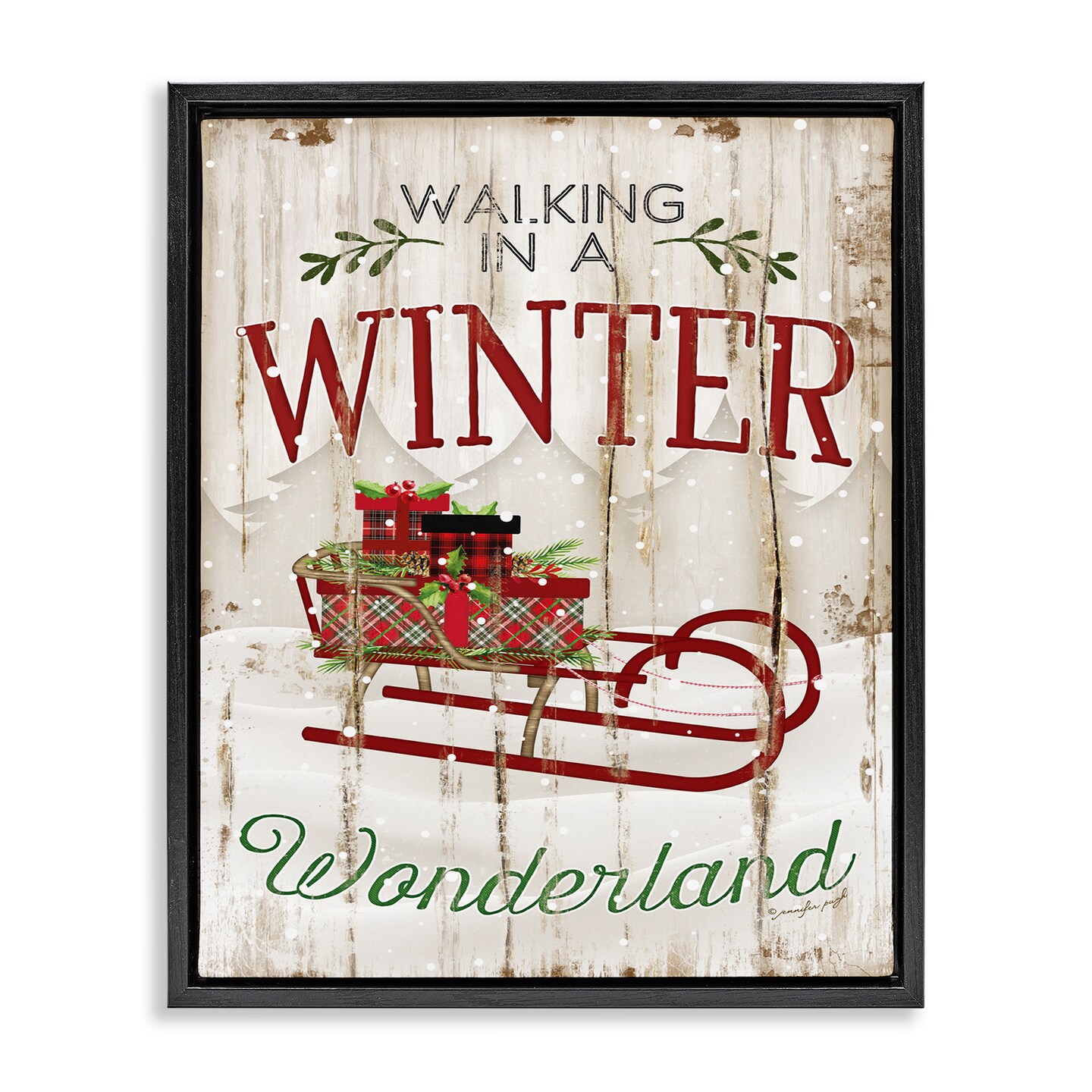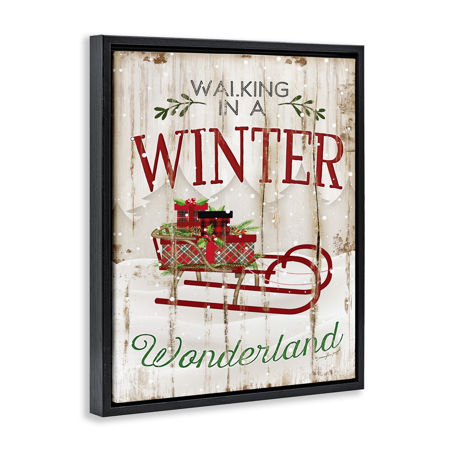 Stupell Industries Rustic Winter Wonderland Sleigh Framed Floater Canvas Wall Art