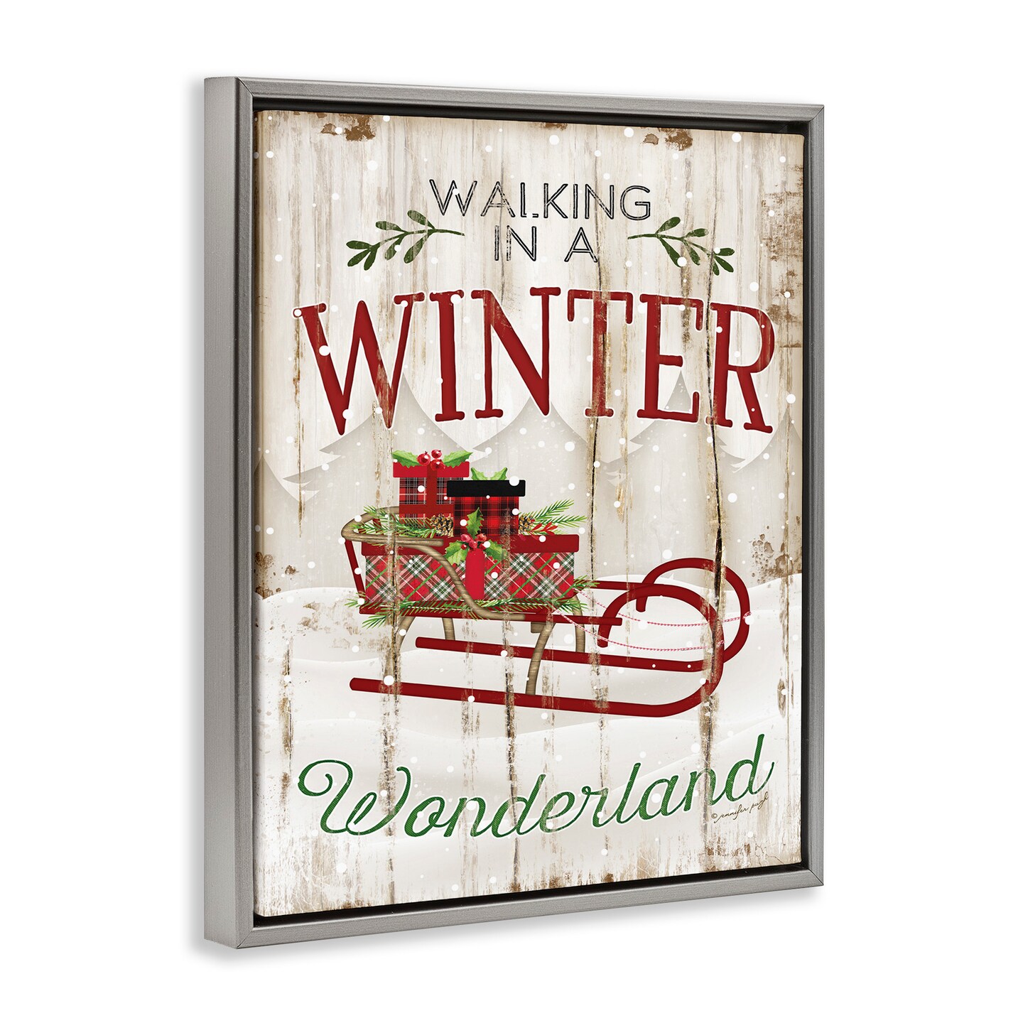 Stupell Industries Rustic Winter Wonderland Sleigh Framed Floater Canvas Wall Art