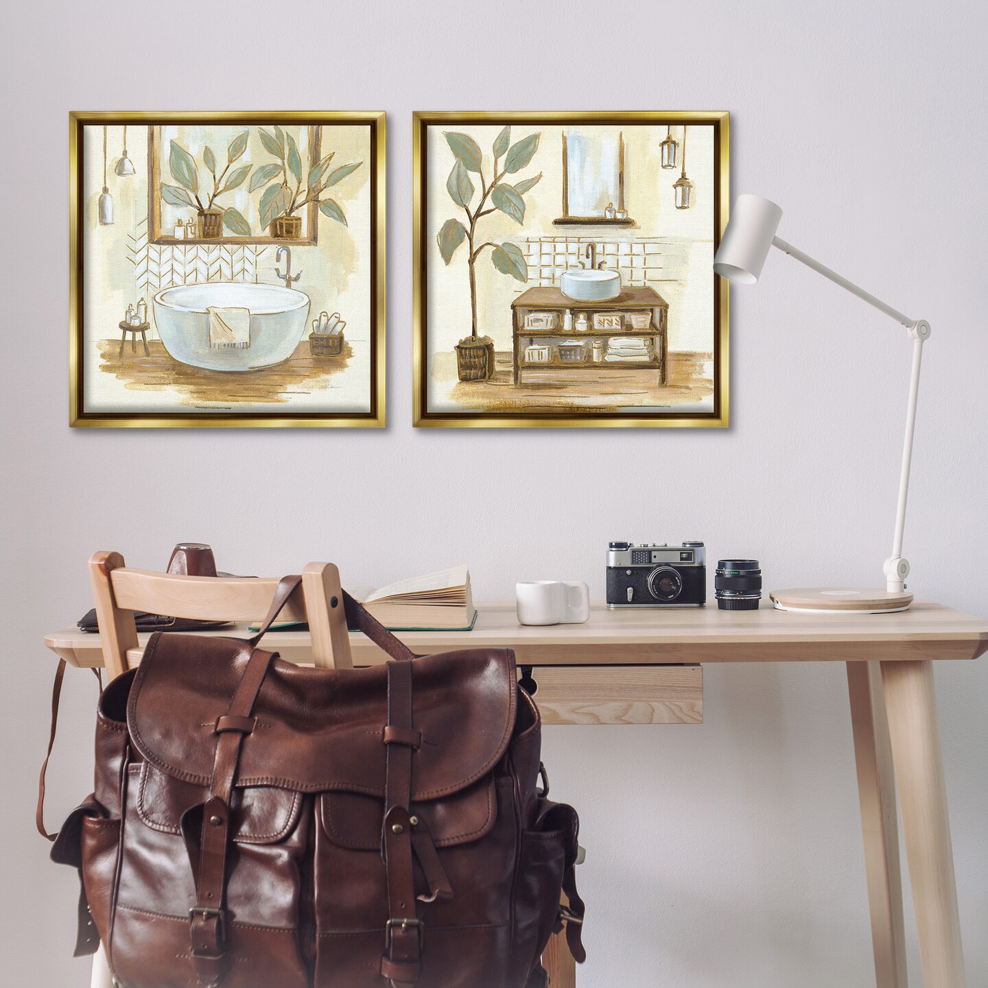 Stupell Industries Sage Green Bathroom Interiors Framed Floater Canvas Wall Art