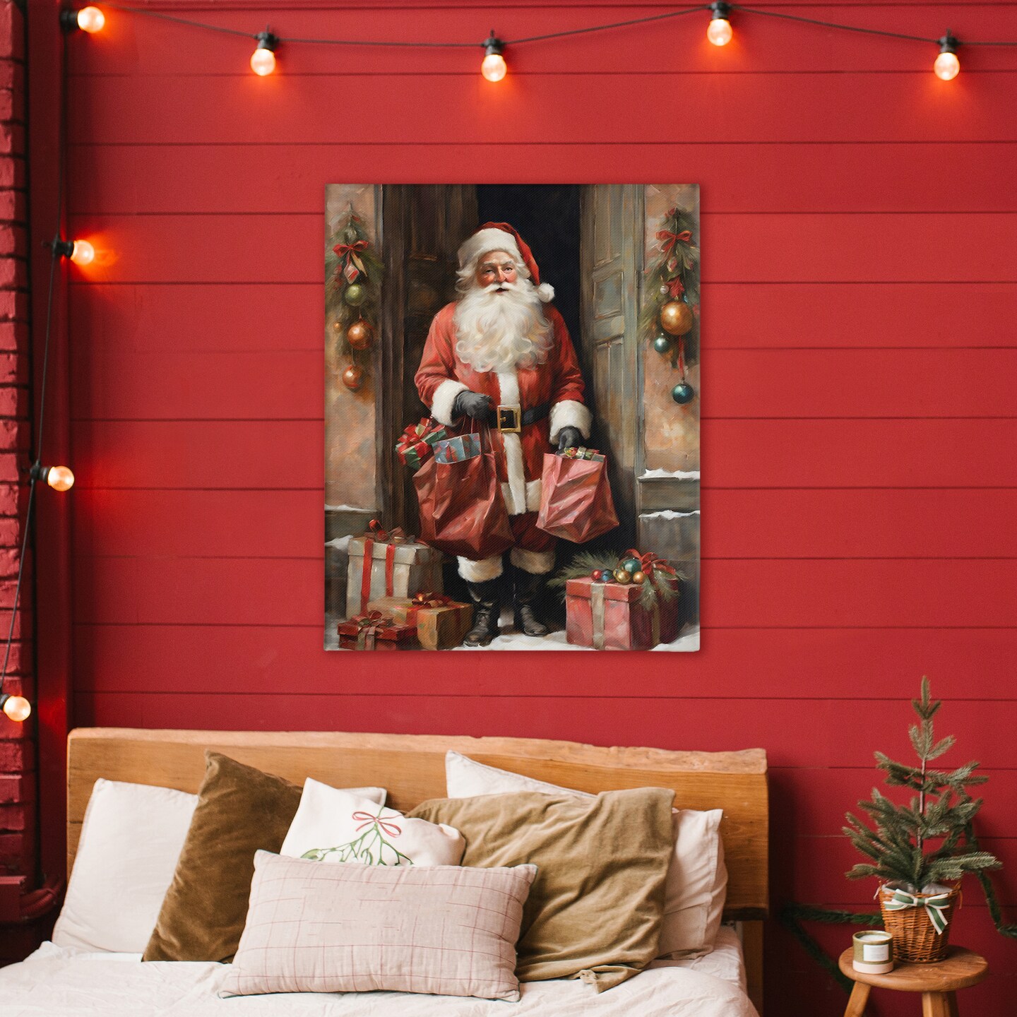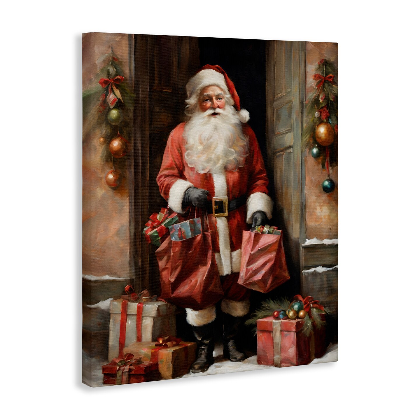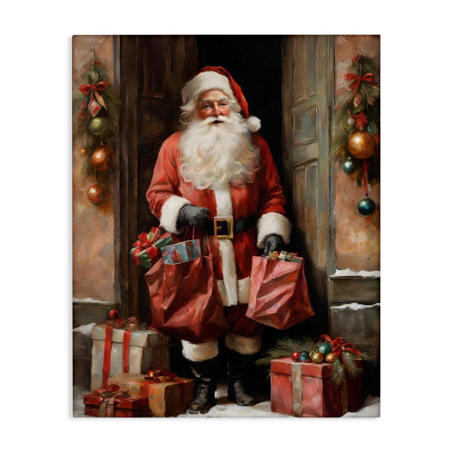 Stupell Industries Santa Claus on Doorstep Canvas, design by Jo Moulton