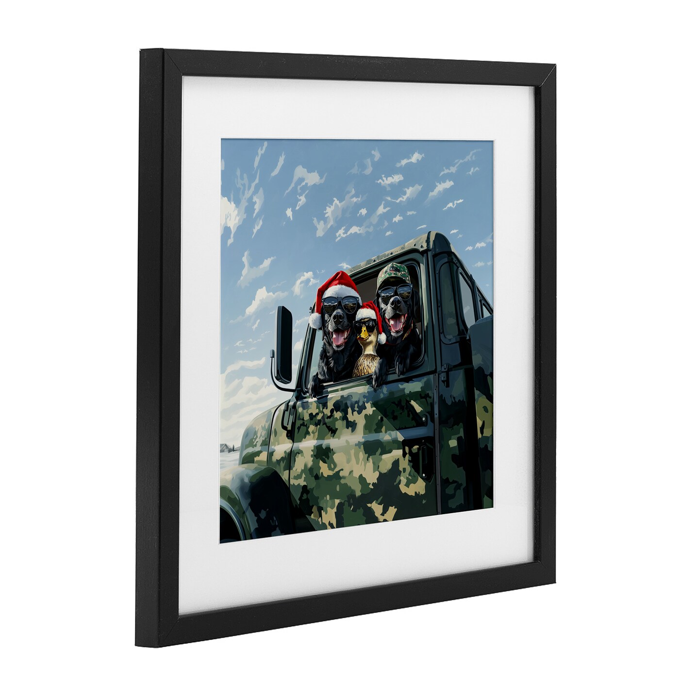 Stupell Industries Santa Dogs & Duck Framed Print Under Glass, design by Jim Baldwin