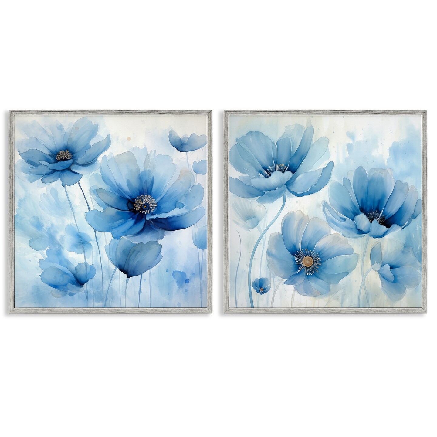 Stupell Industries Saturated Blue Blossoms 2pc Framed Giclee Wall Art Set Design by Irena Orlov