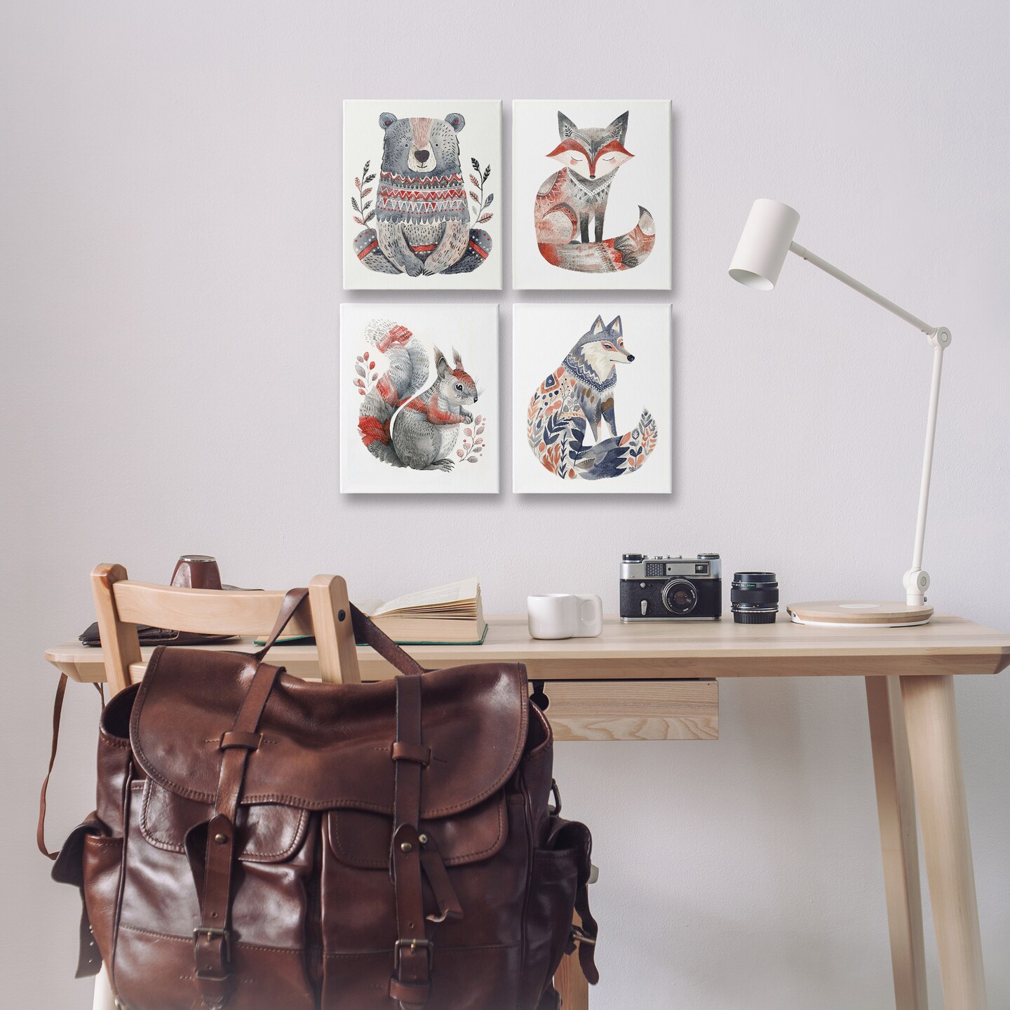 Stupell Industries Scandinavian Forest Animals 4pc Canvas Wall Art Set Design by LSR Design Studio
