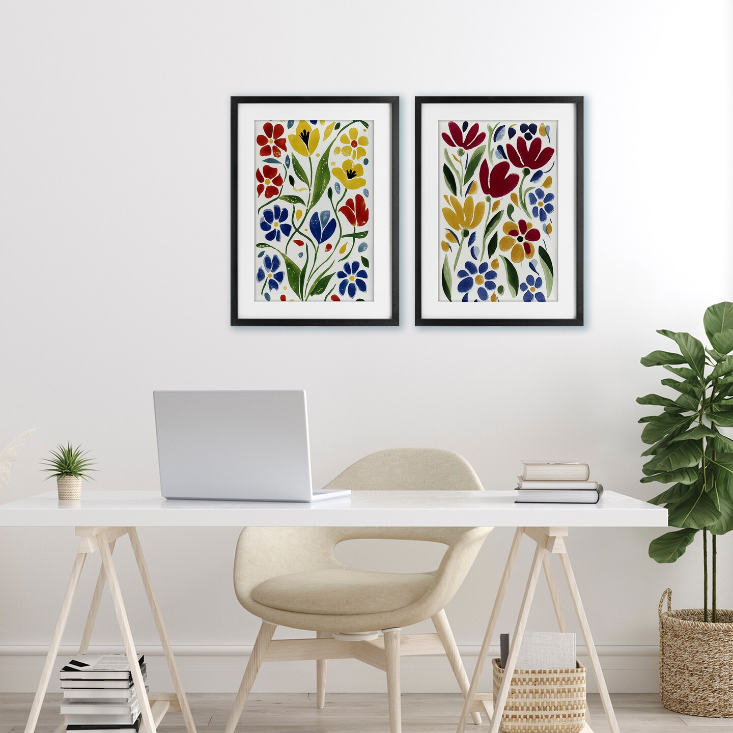 Stupell Industries Scandinavian Wild Flowers 2pc Framed Print Under Glass Set, design by Annabelle Hall