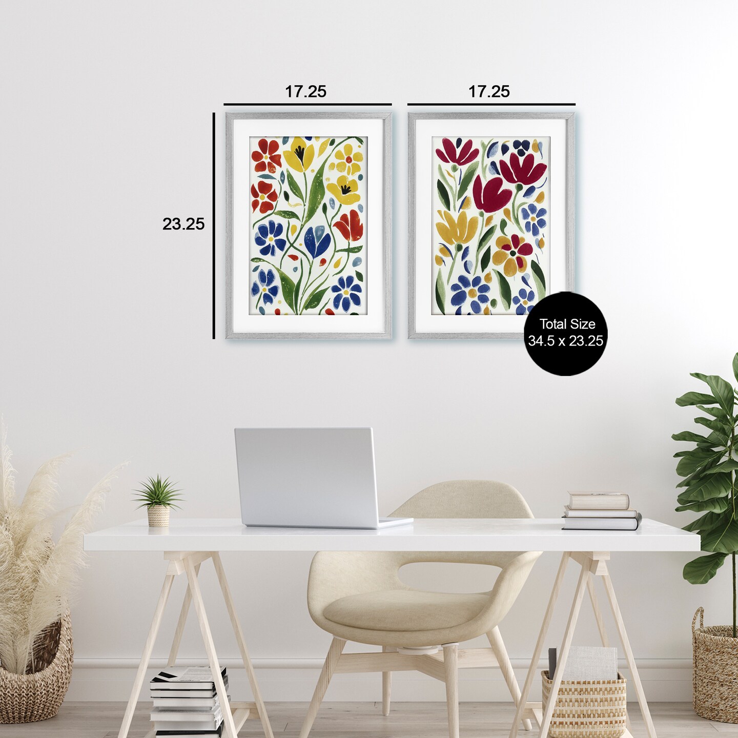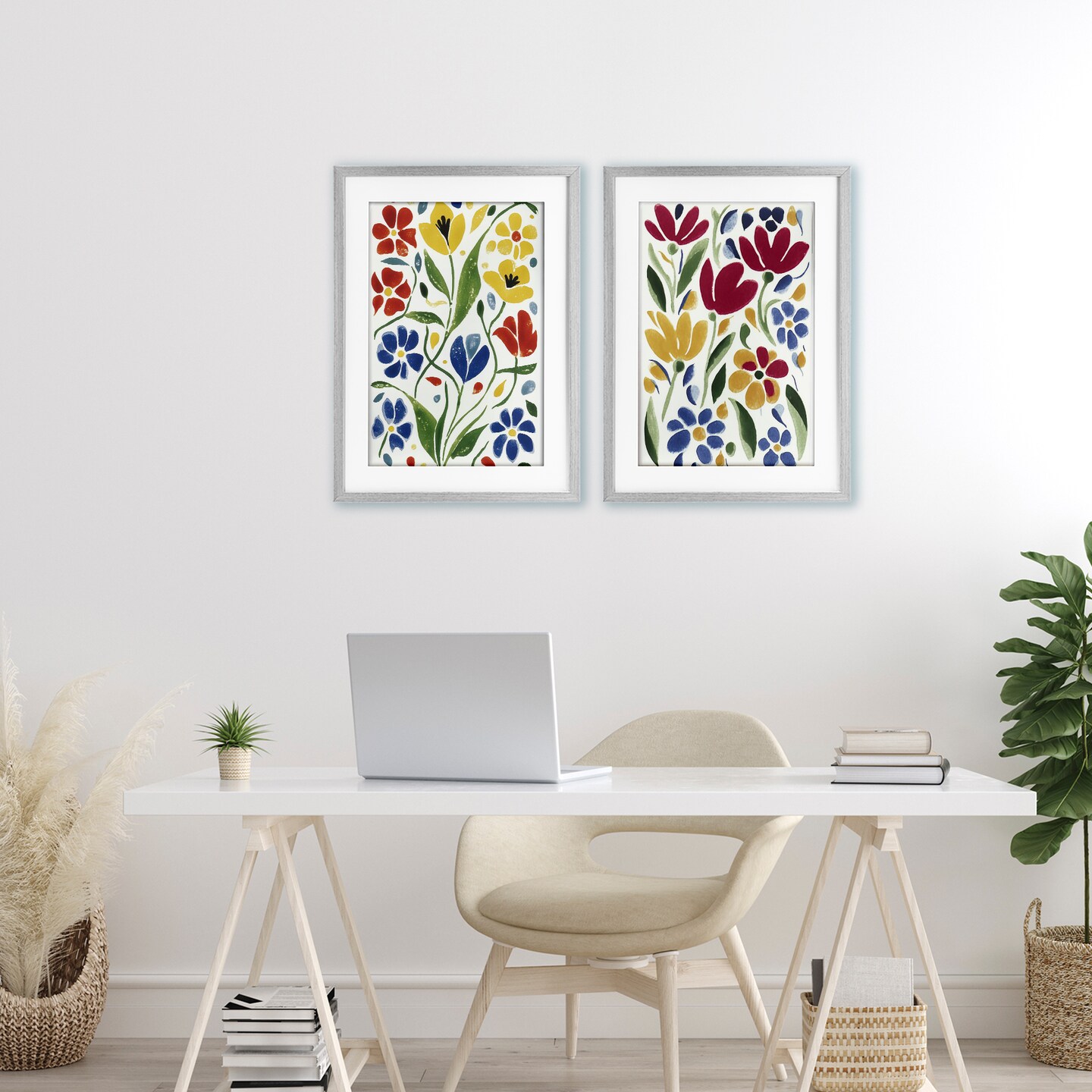 Stupell Industries Scandinavian Wild Flowers 2pc Framed Print Under Glass Set, design by Annabelle Hall