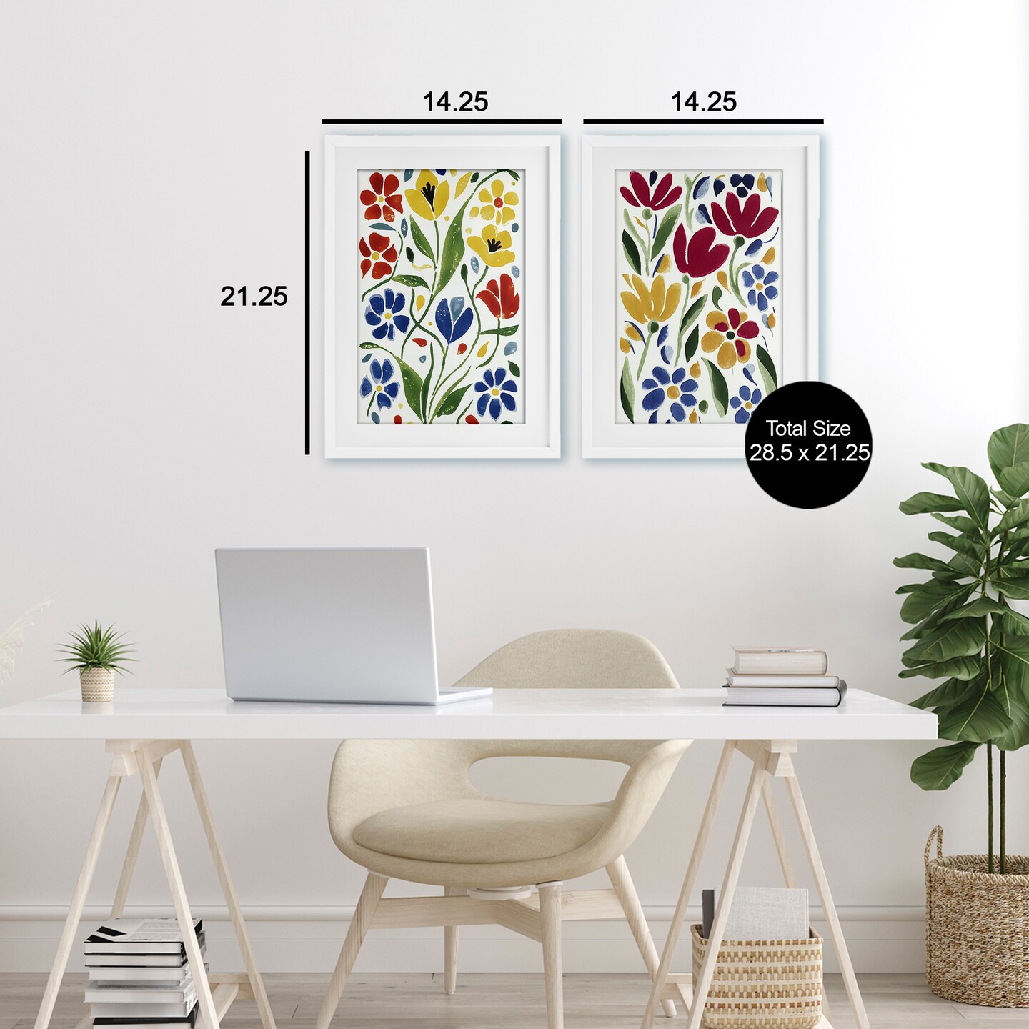 Stupell Industries Scandinavian Wild Flowers 2pc Framed Print Under Glass Set, design by Annabelle Hall