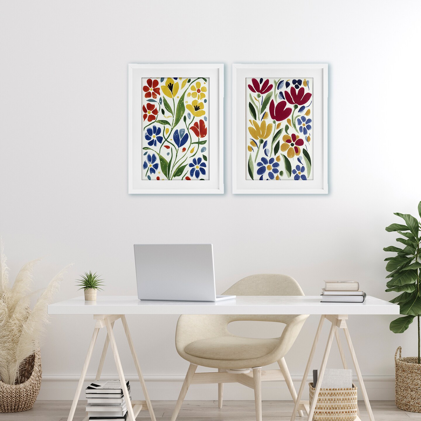 Stupell Industries Scandinavian Wild Flowers 2pc Framed Print Under Glass Set, design by Annabelle Hall