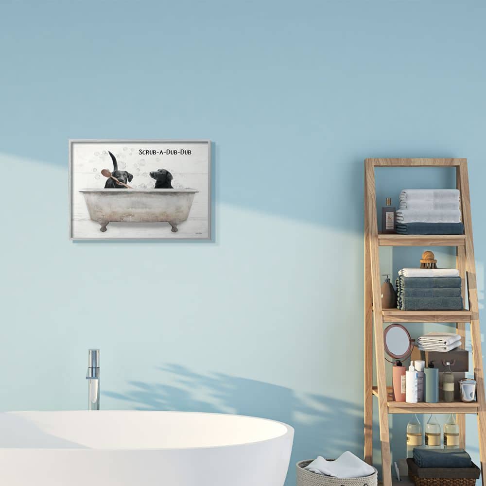Stupell Industries Scrub a Dub Dub Quote Family Pet Dog Bath in Gray Frame Wall Art