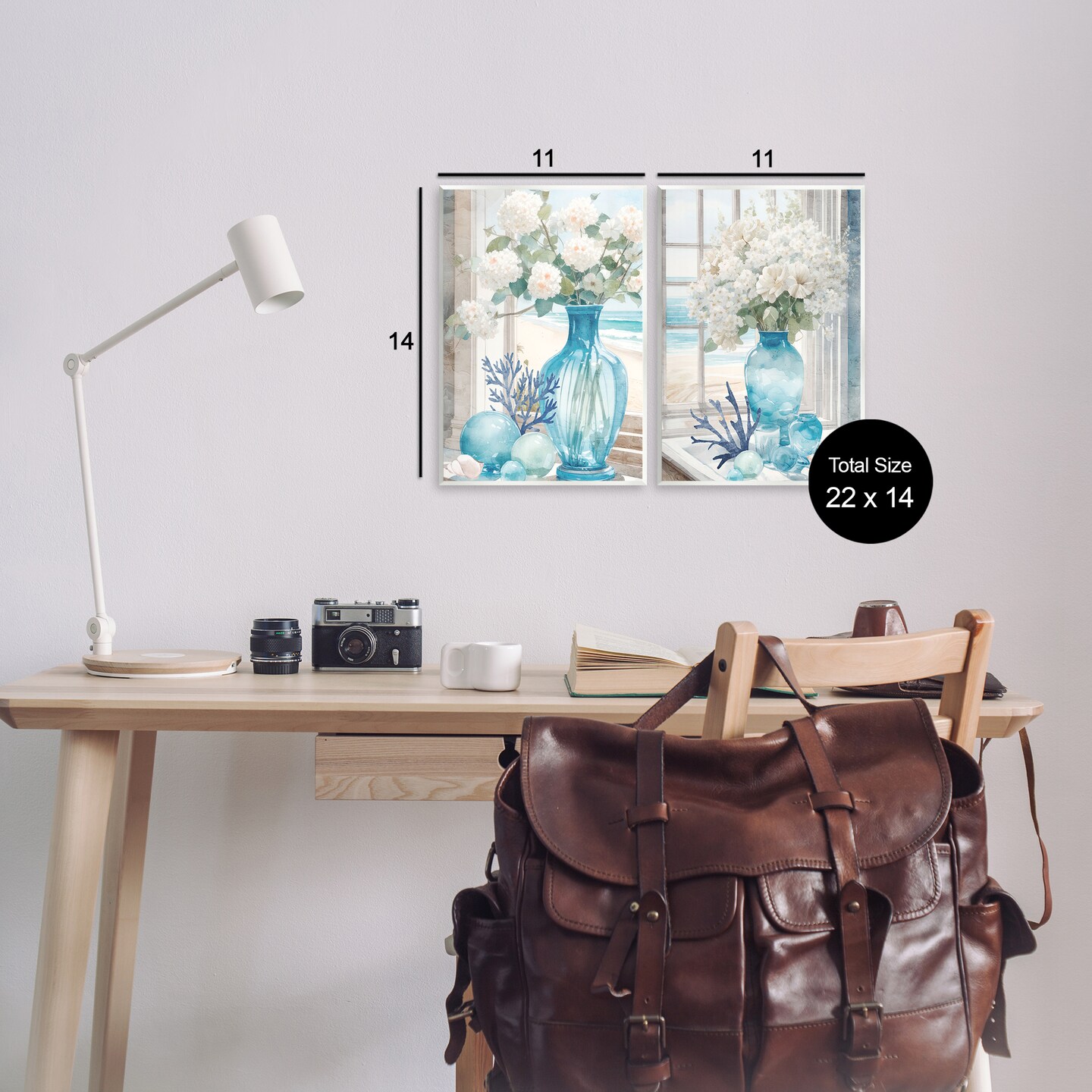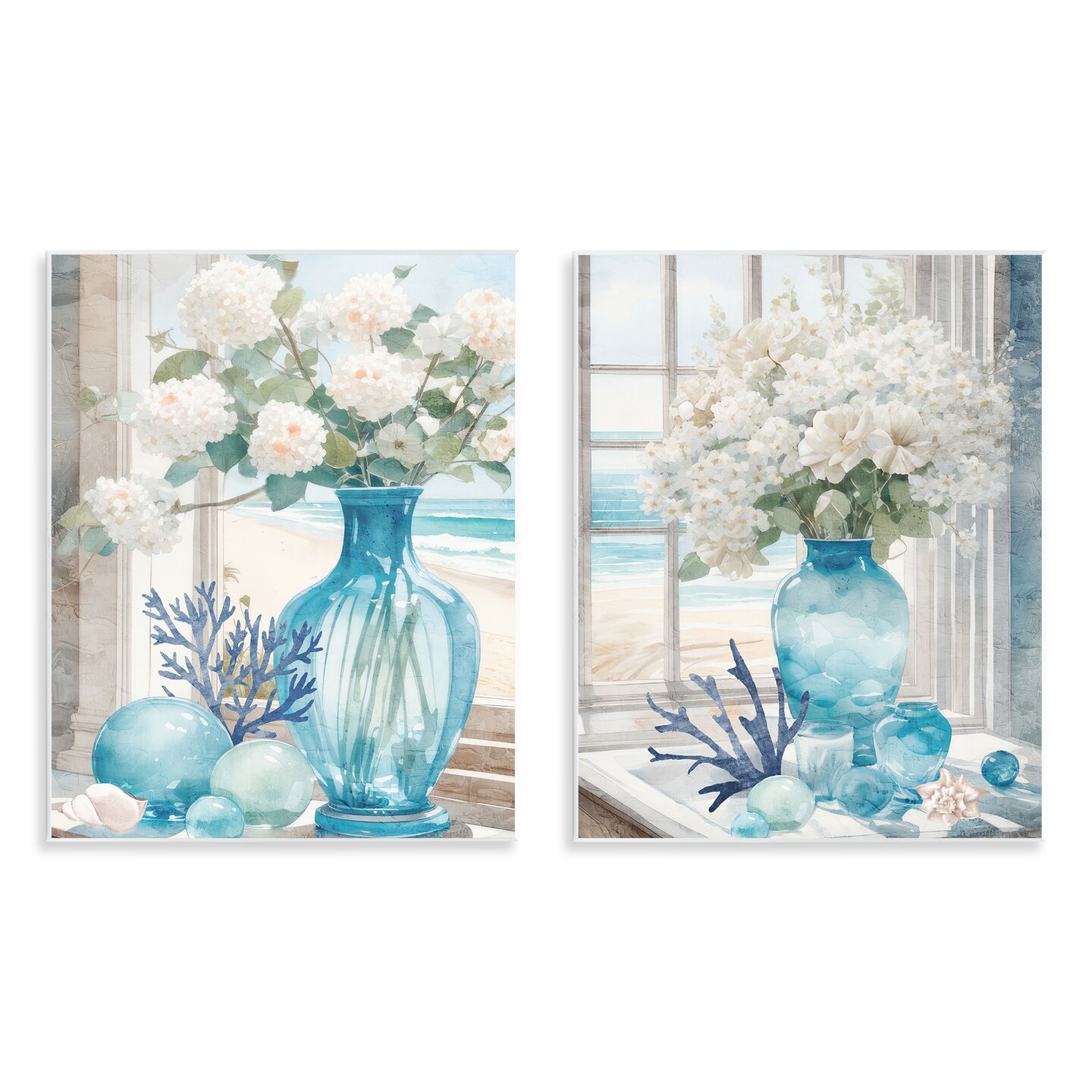 Stupell Industries Sea Glass Coral Beach Bouquet 2 pc Wall Plaque Art Set Design by Kim Allen