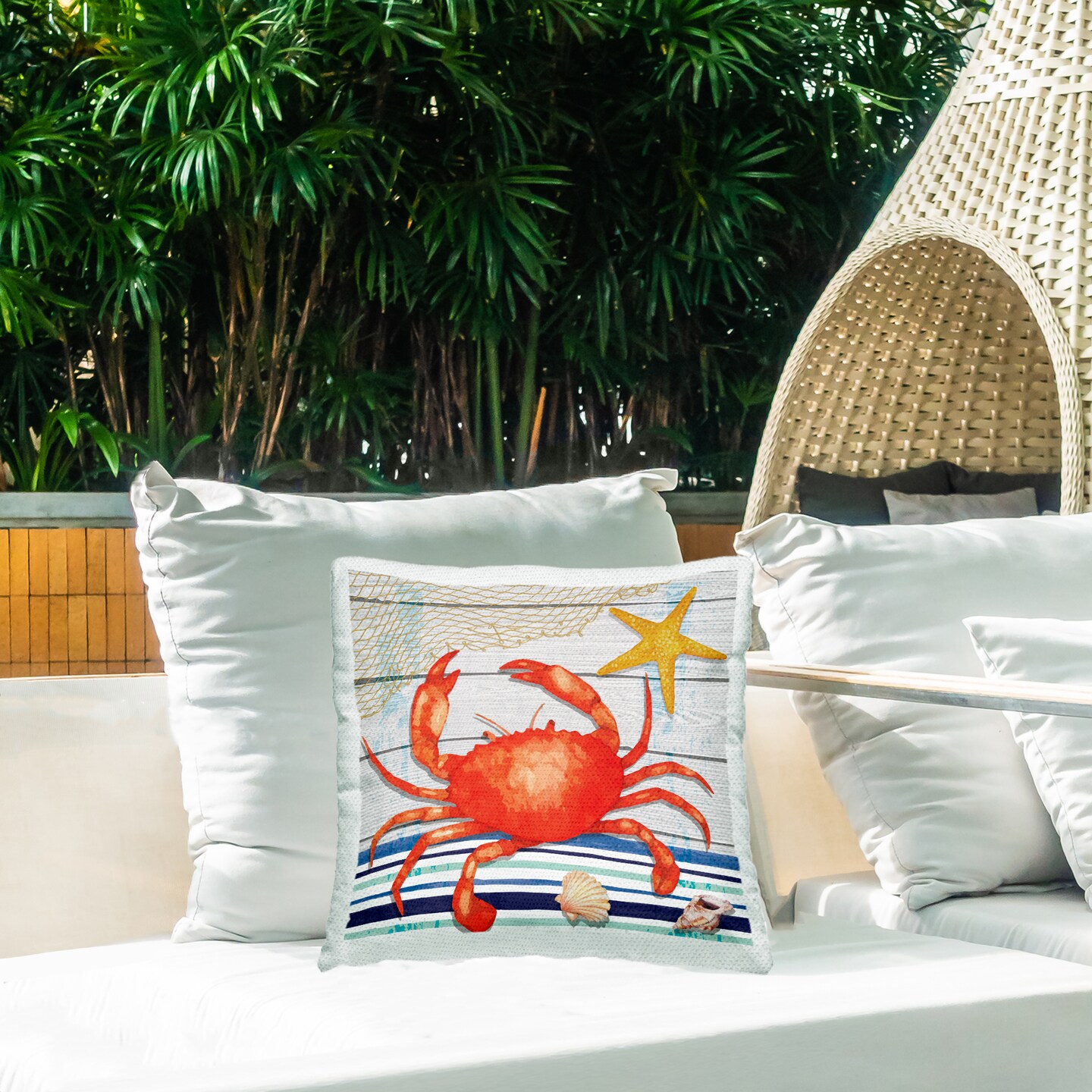 Stupell Industries Sea Life Crab Starfish Striped Outdoor Printed Pillow