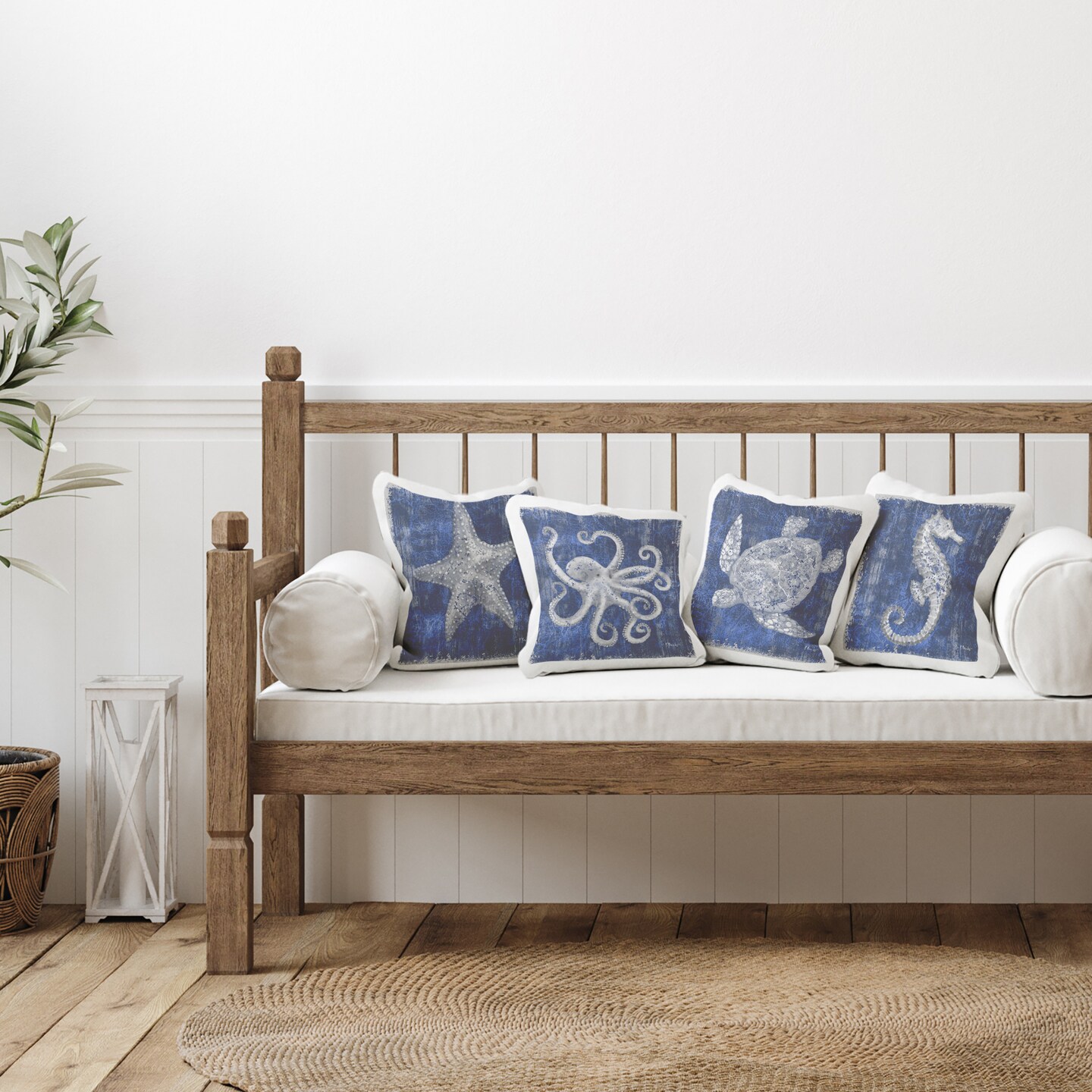 Stupell Industries Sea Life on Abstract Blue 4pc Decorative Printed Throw Pillow Set Design by Paul Brent, 18 x 7 x 18