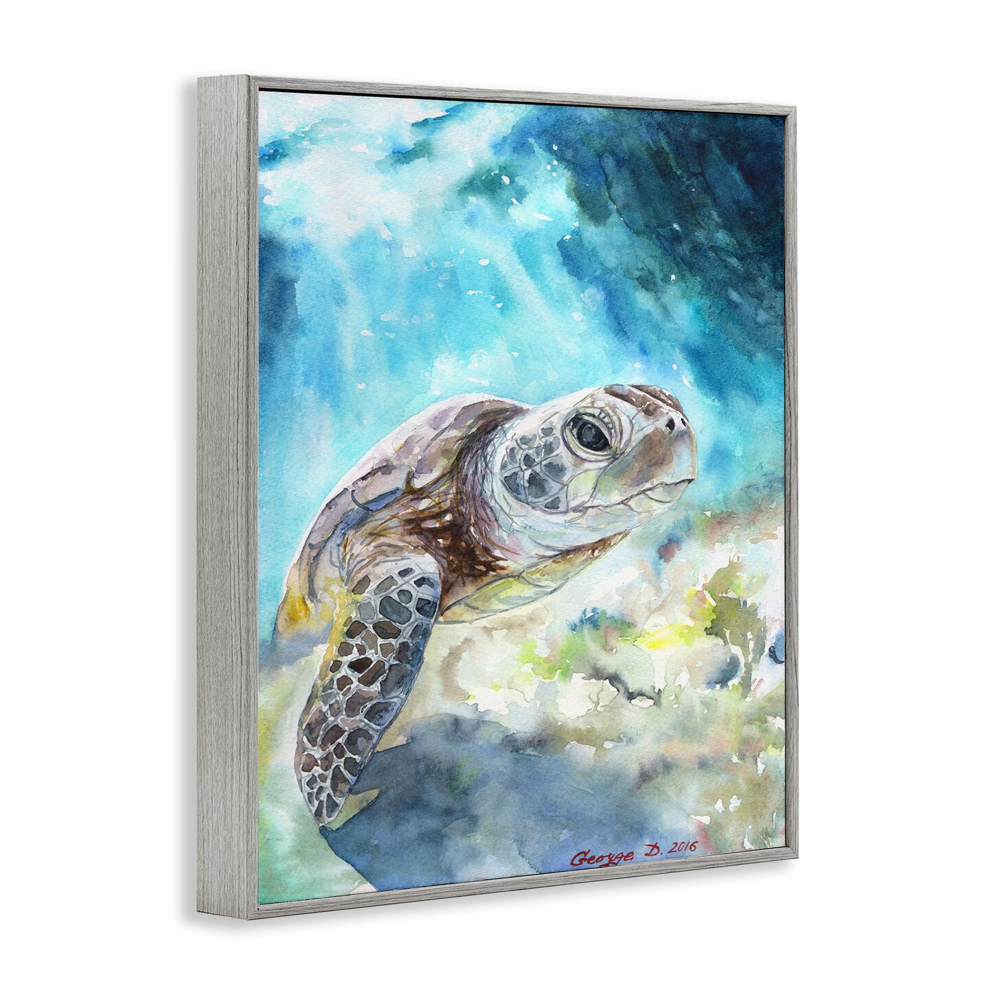 Stupell Industries Sea Turtle Ocean Watercolor Framed Giclee Art