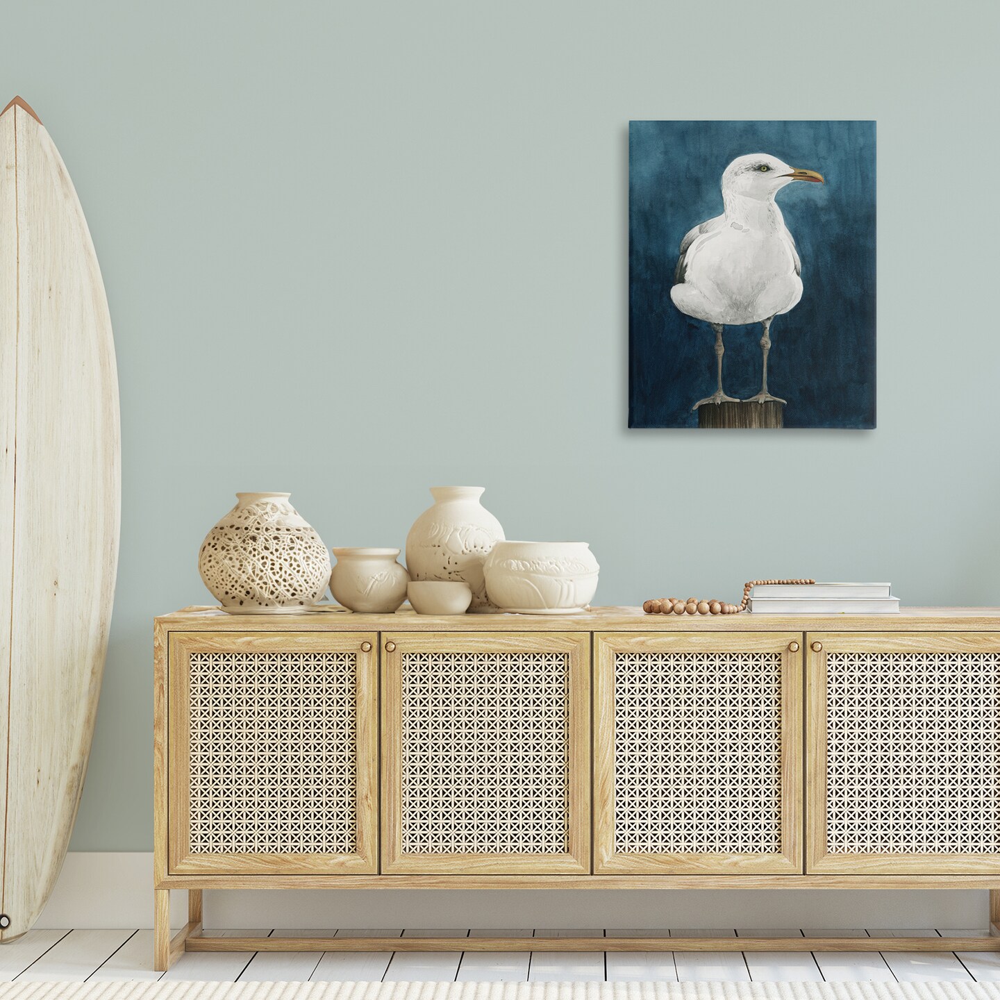 Stupell Industries Seagull Perched over Blue Canvas Wall Art Design by Grace Popp