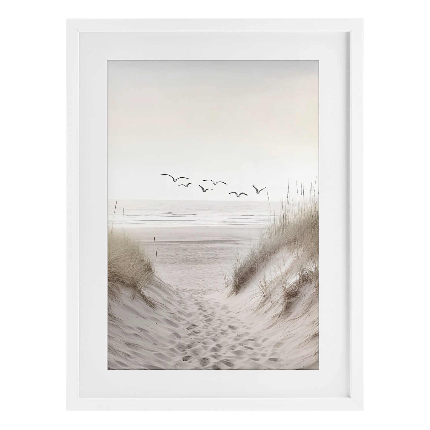 Stupell Industries Seagulls over Sandy Footprints Framed Print Under Glass, design by Decent Exposures
