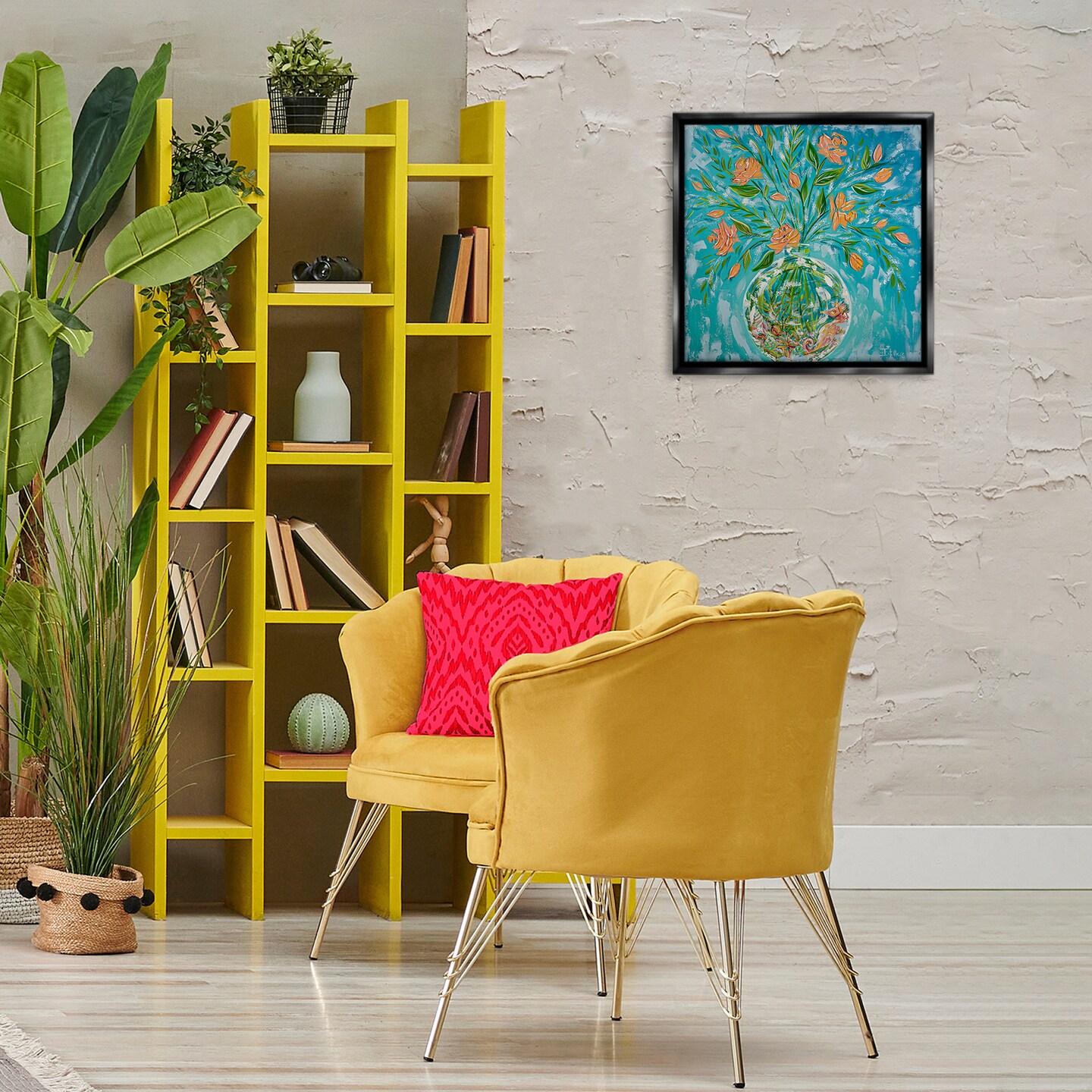 Stupell Industries Seahorse Fish Bowl Bouquet Floater Framed Canvas Wall Art Design by Estelle Grengs
