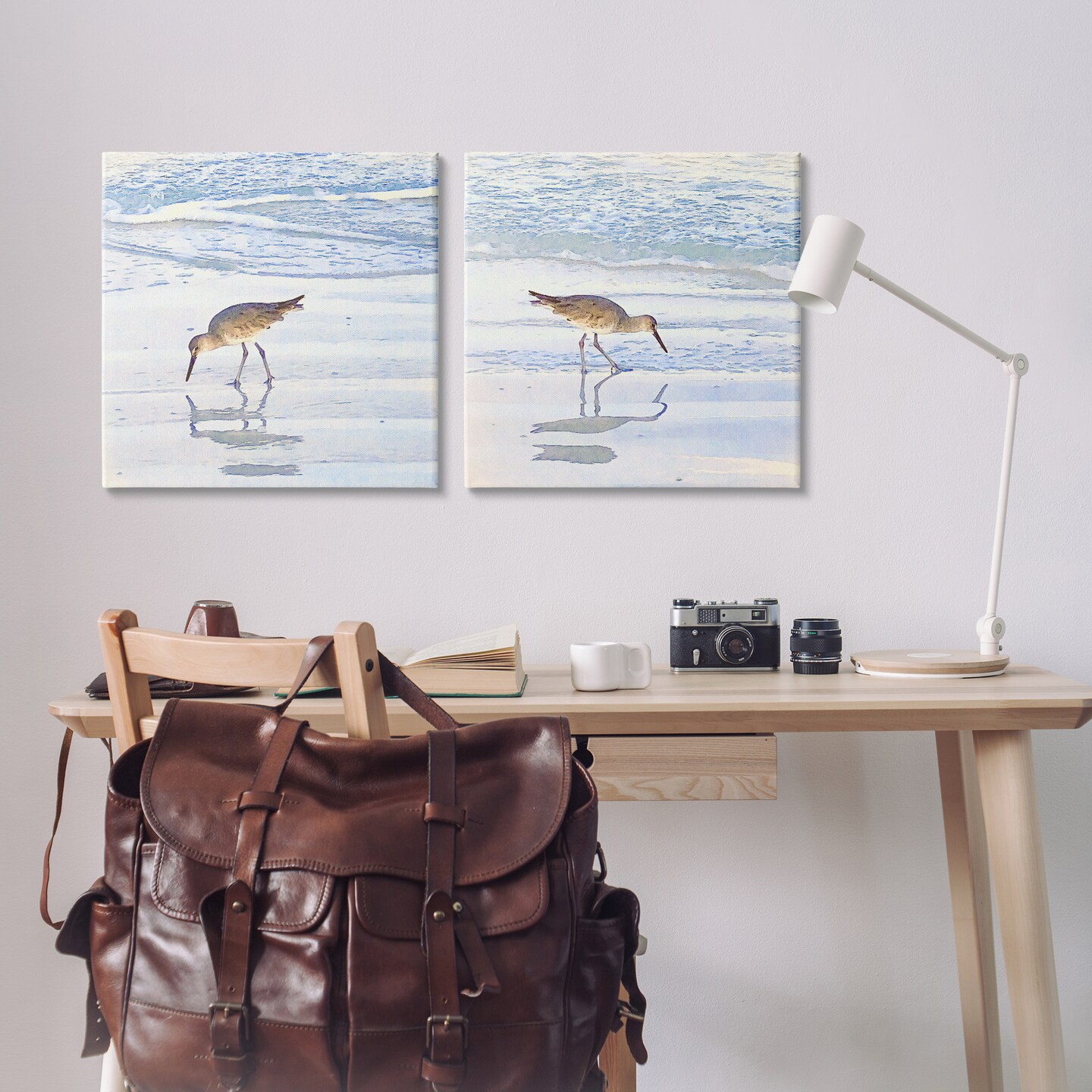 Stupell Industries Seaside Sandpiper Birds 2pc Canvas Wall Art Set Design by Christine Zalewski
