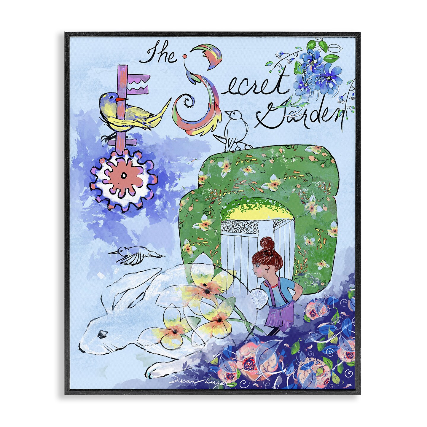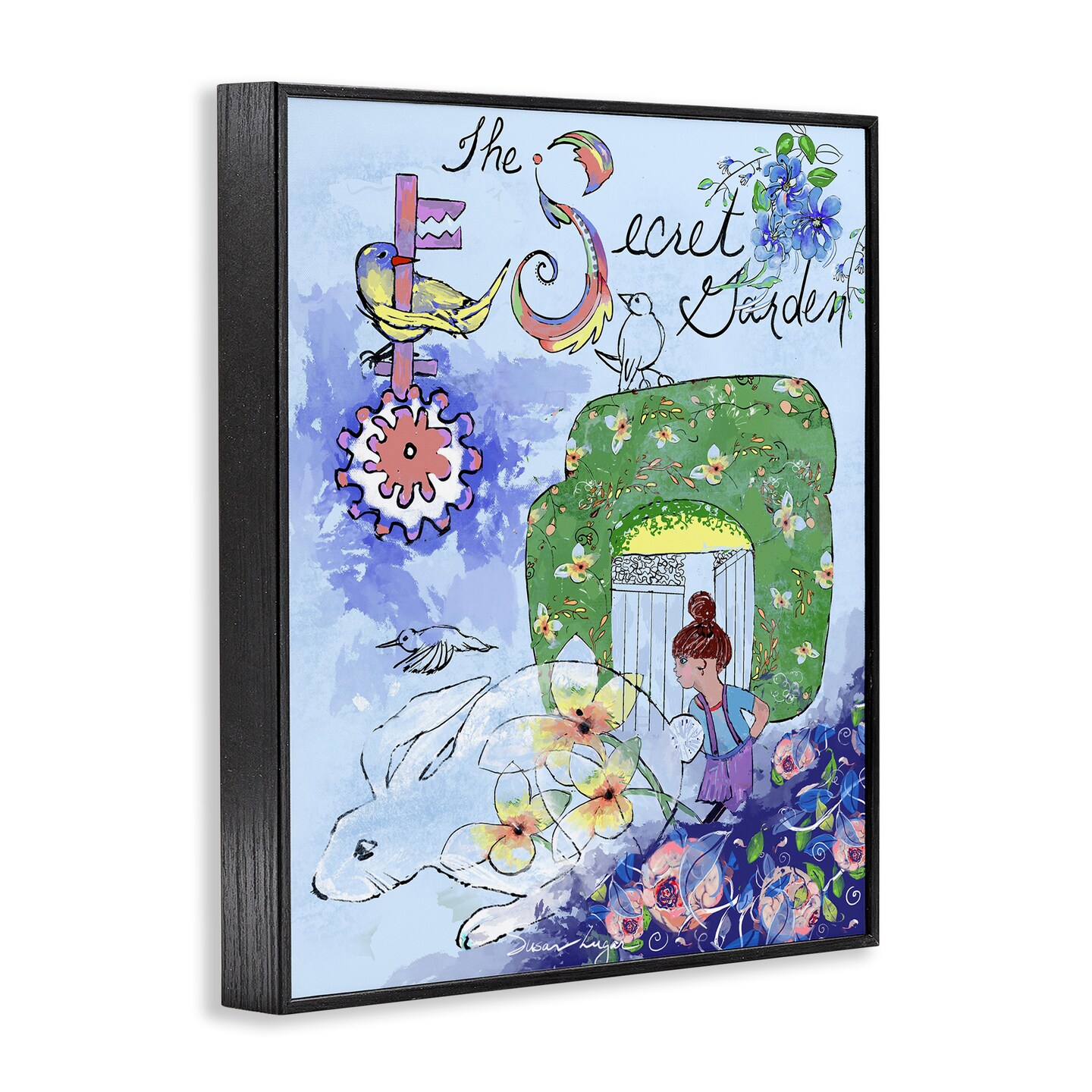 Stupell Industries Secret Garden Folk Illustration Framed Giclee, design by Susan Lugar