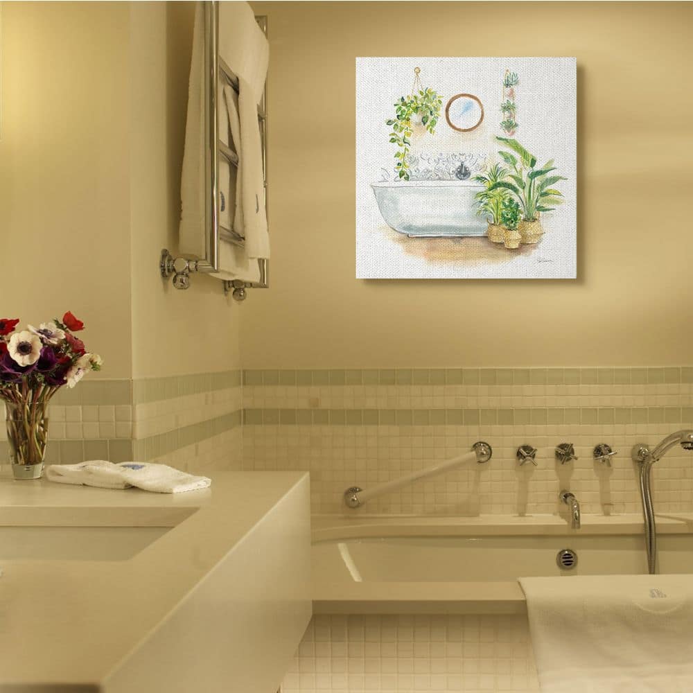 Stupell Industries Serene Bathroom Interior with Greenery Plants Painting Canvas Wall Art