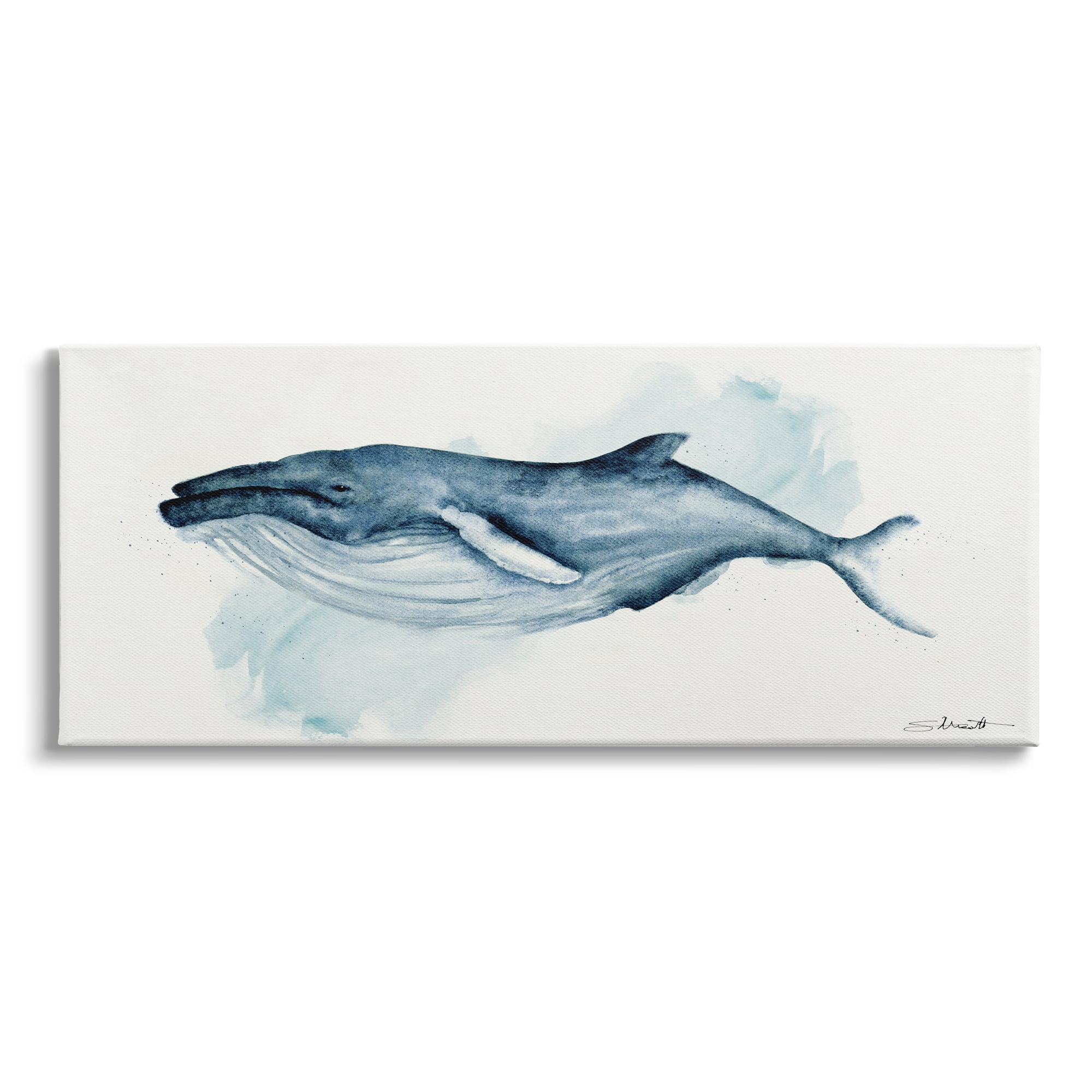 Stupell Industries Serene Humpback Whale Watercolor Painting Blue Nautical Animal Canvas Wall Art