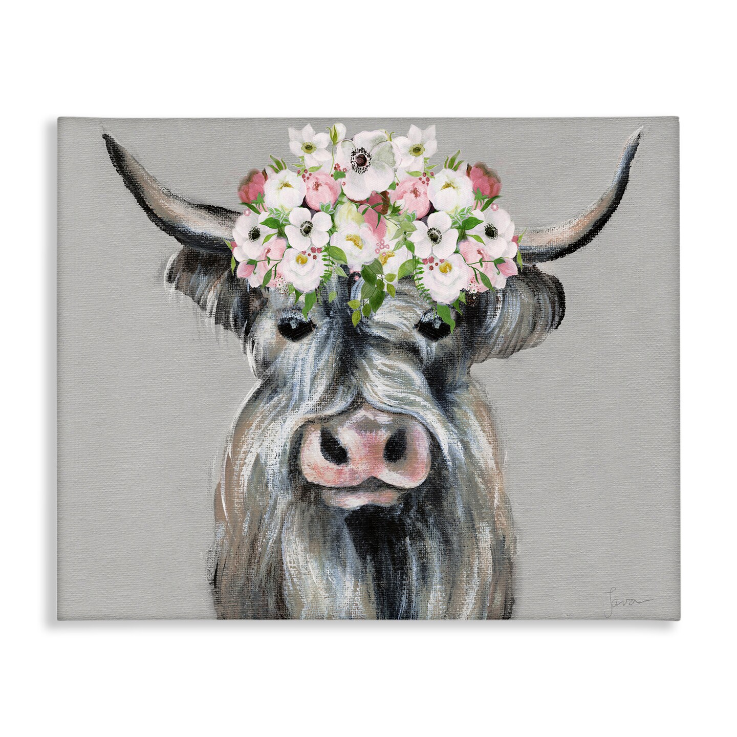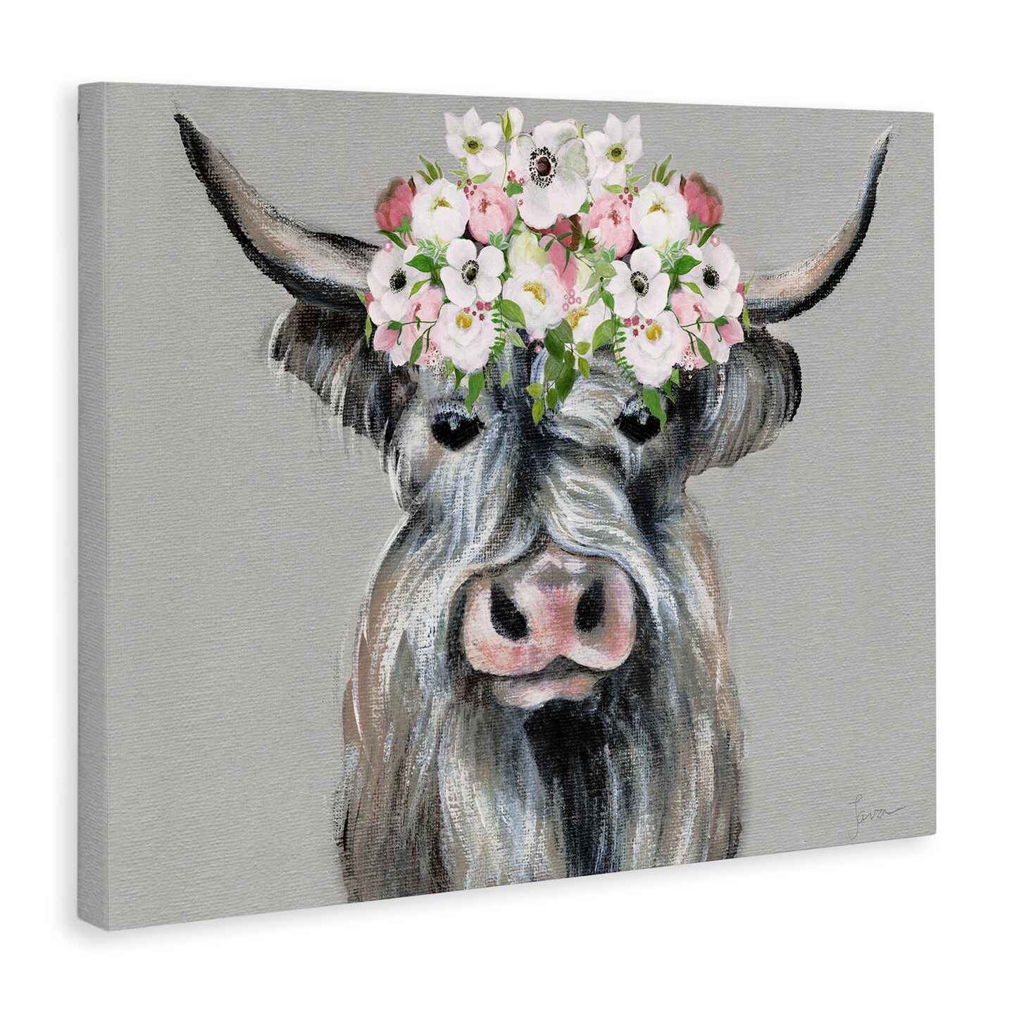 Stupell Industries Shabby Chic Cattle with Garland Canvas Design by Janet Tava