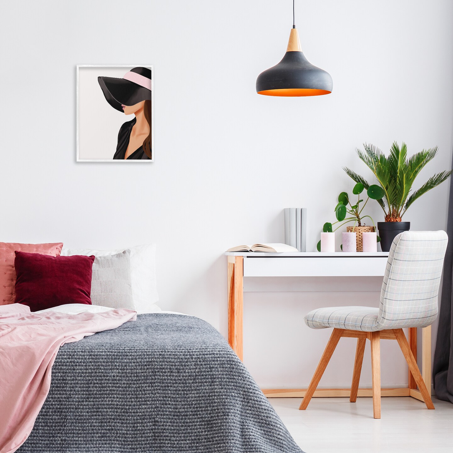 Stupell Industries Shaded Woman Large Hat Framed Giclee Wall Art Design by Saba Rauf