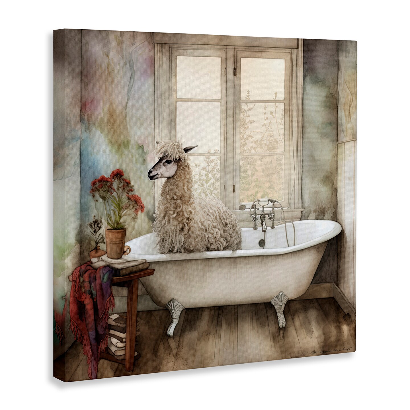 Stupell Industries Shaggy Alpaca Bath Time Canvas, design by Sasha