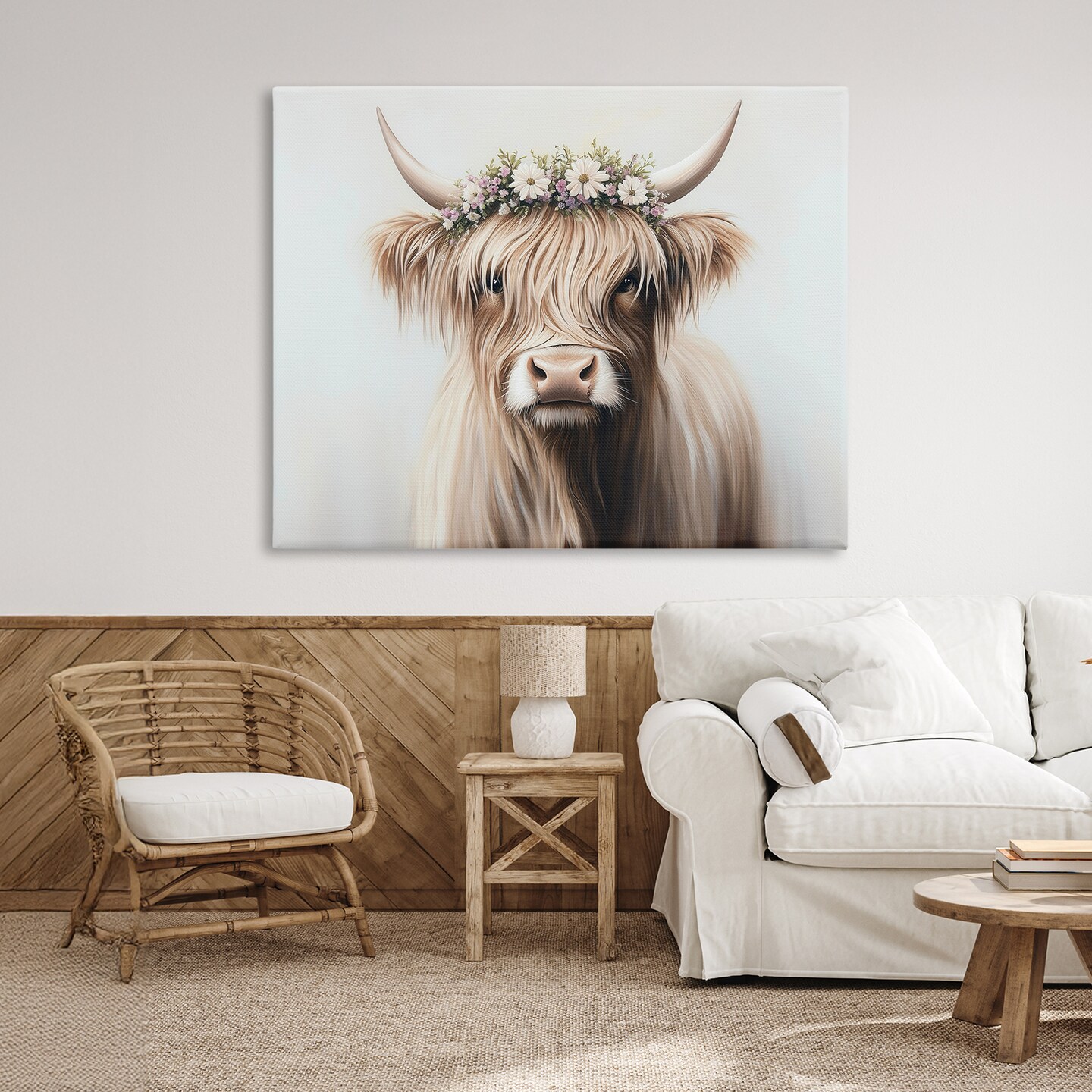 Stupell Industries Shaggy Cattle Floral Crown Canvas, design by Shawna Stewart