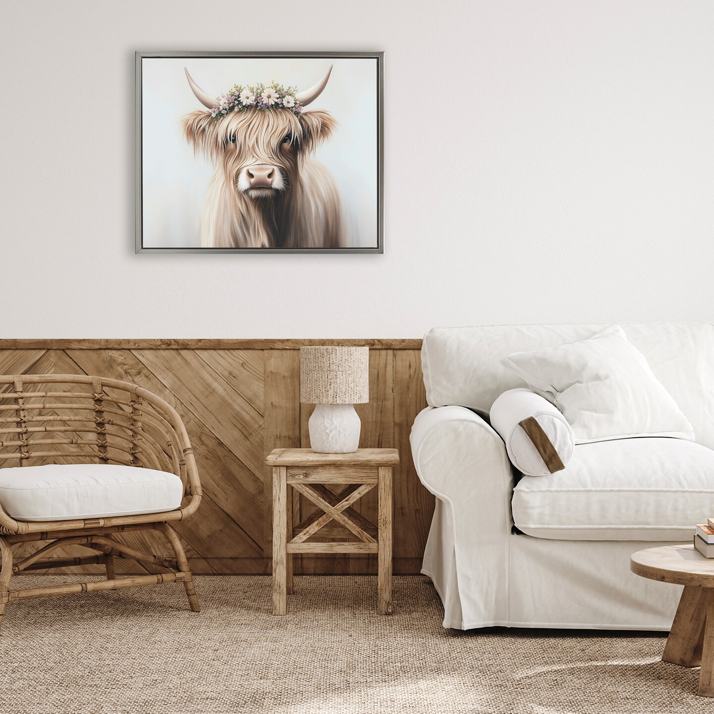 Stupell Industries Shaggy Cattle Floral Crown Floating Frame, design by Shawna Stewart
