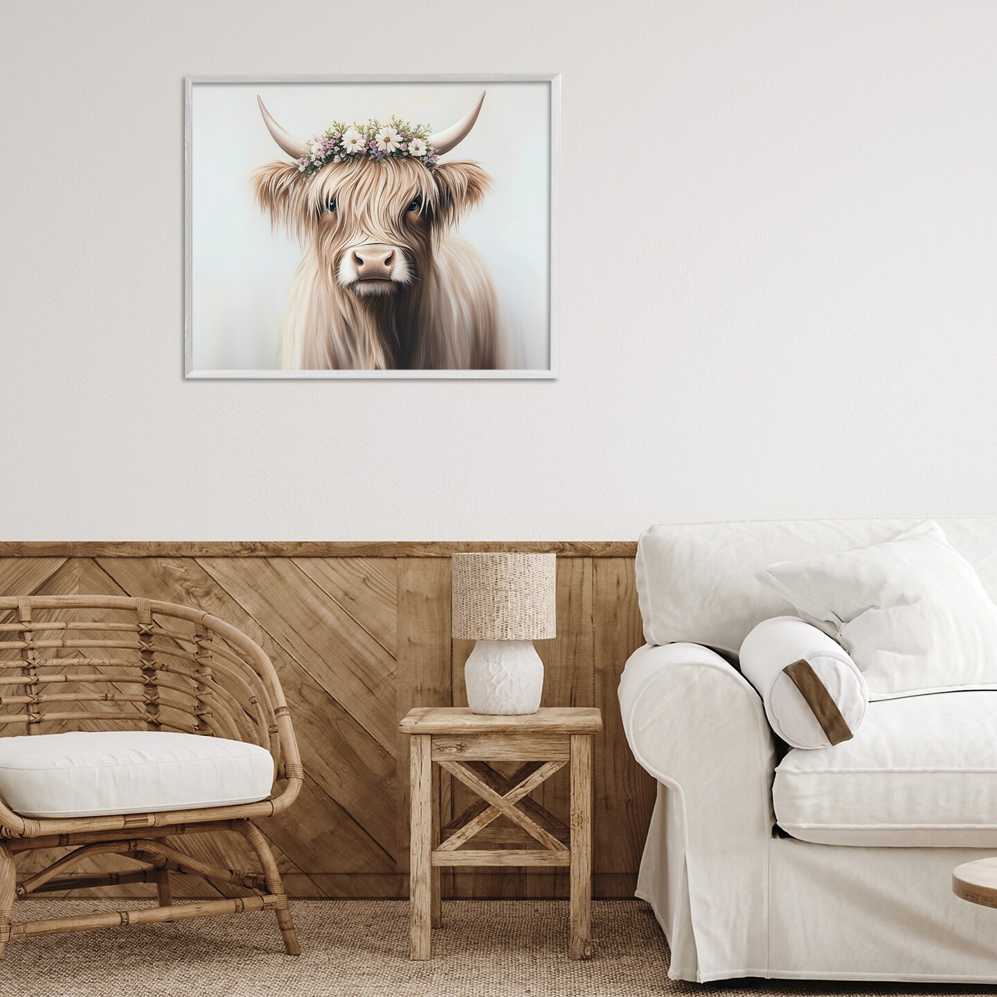 Stupell Industries Shaggy Cattle Floral Crown Framed Giclee, design by Shawna Stewart