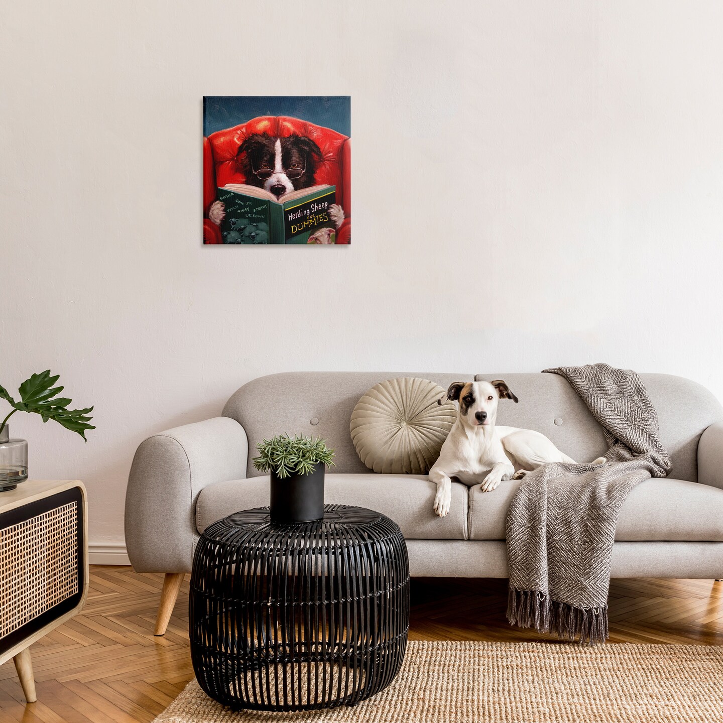 Stupell Industries Sheep Dog Reading for Dummies Canvas Wall Art