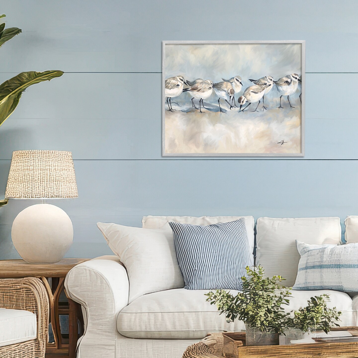 Stupell Industries Shore Birds Lineup on Beach Framed Giclee, design by Ramona Murdock