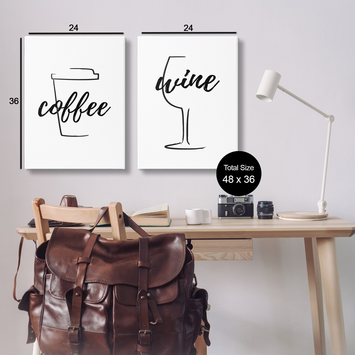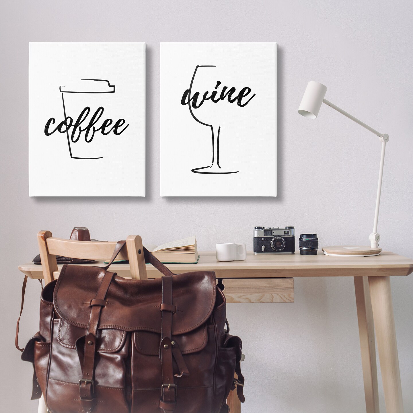 Stupell Industries Simple Coffee Wine Drawing 2 pc Canvas Wall Art Set Design by Martina Pavlova