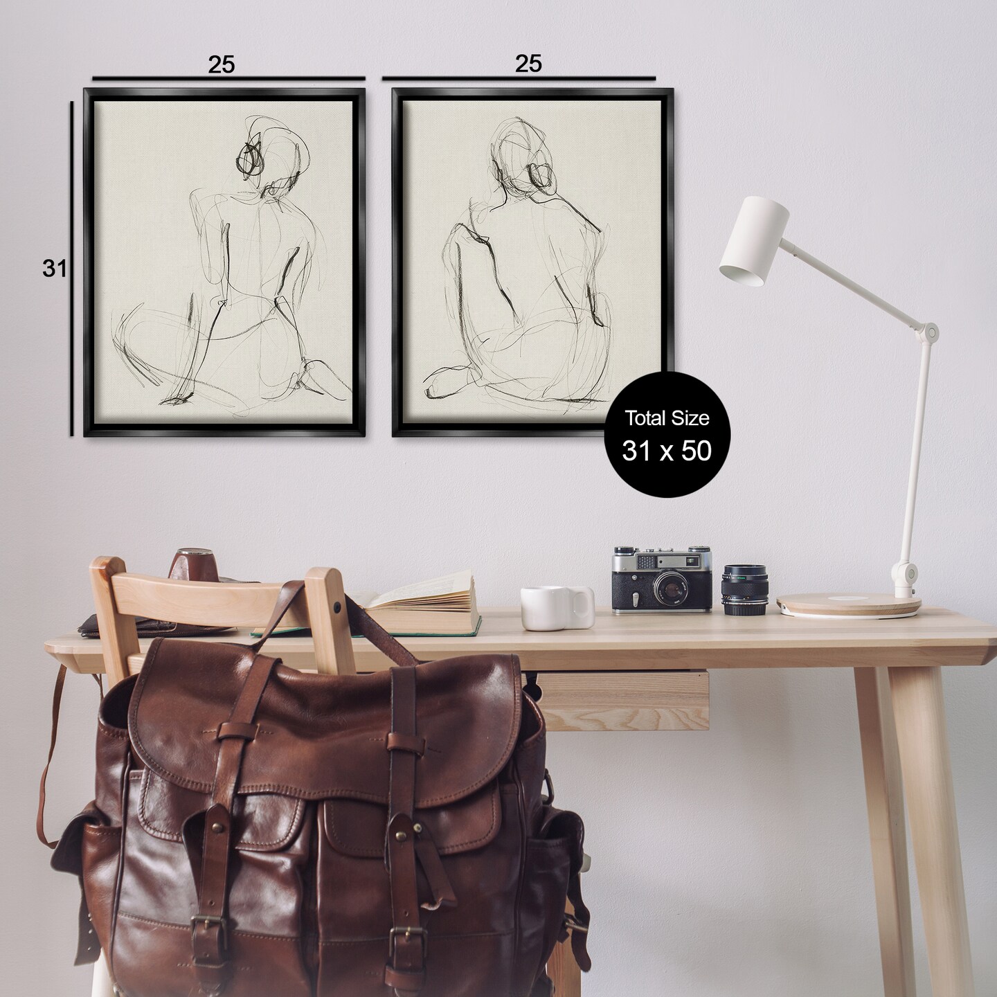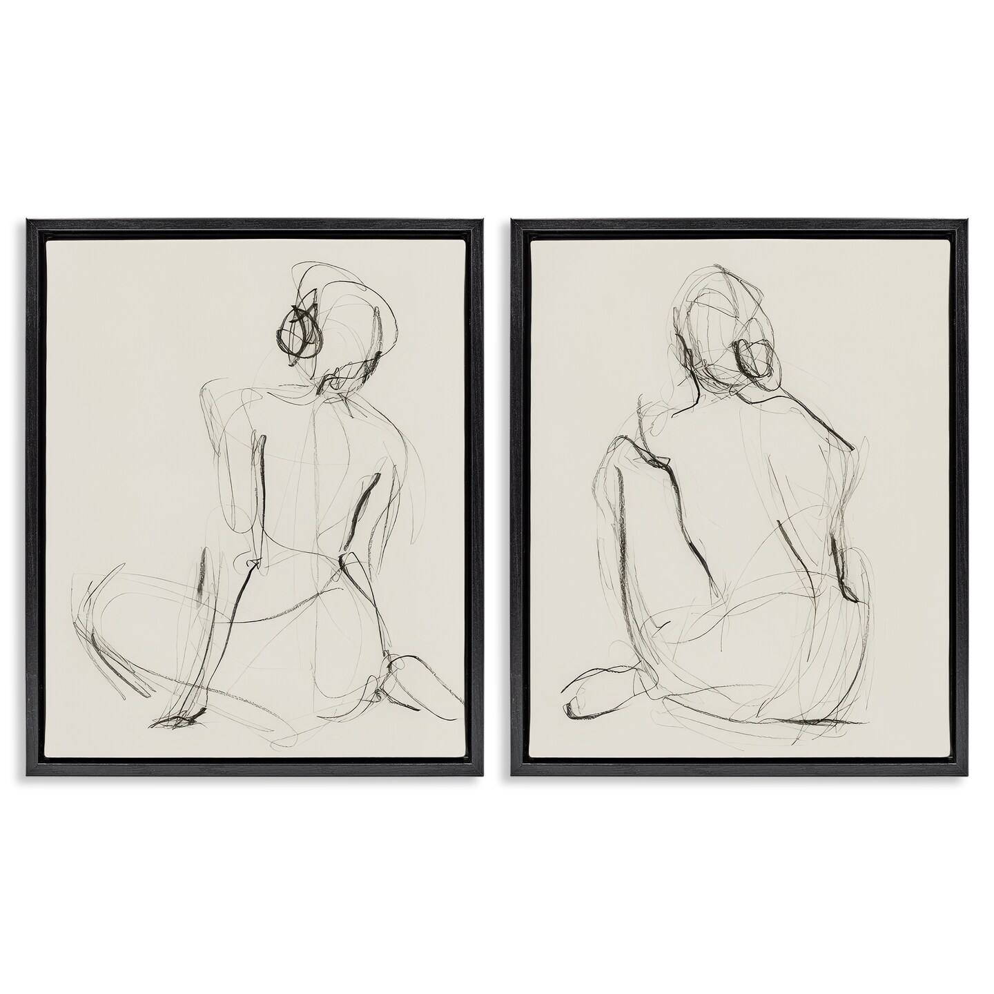 Stupell Industries Sitting Female Figure Drawing 2 pc Framed Floater Canvas Wall Art Set Design by Victoria Barnes