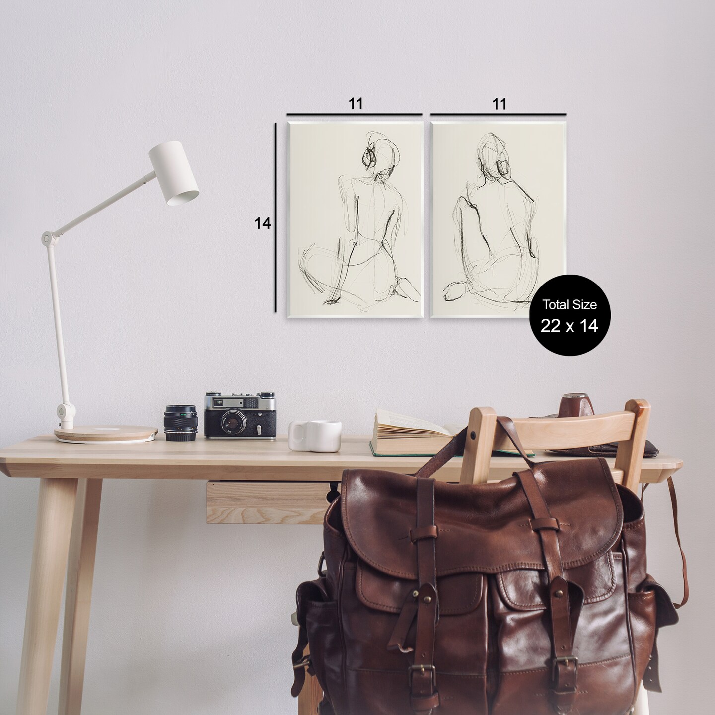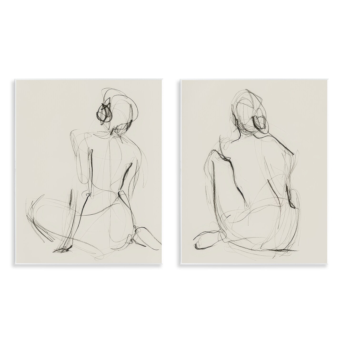 Stupell Industries Sitting Female Figure Drawing 2 pc Wall Plaque Art Set Design by Victoria Barnes