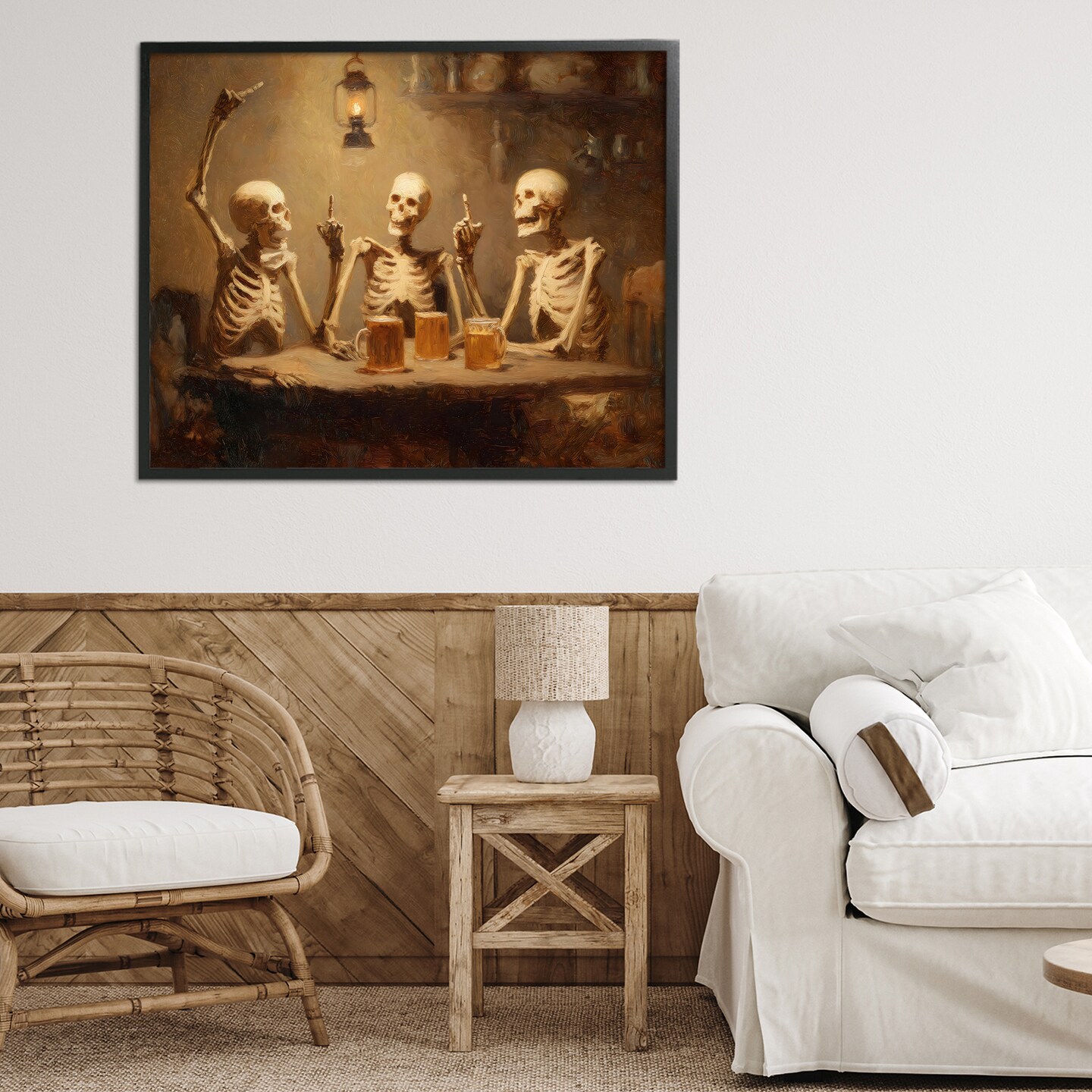Stupell Industries Skeletons Drinking at Tavern Framed Giclee, design by Arlington Prints