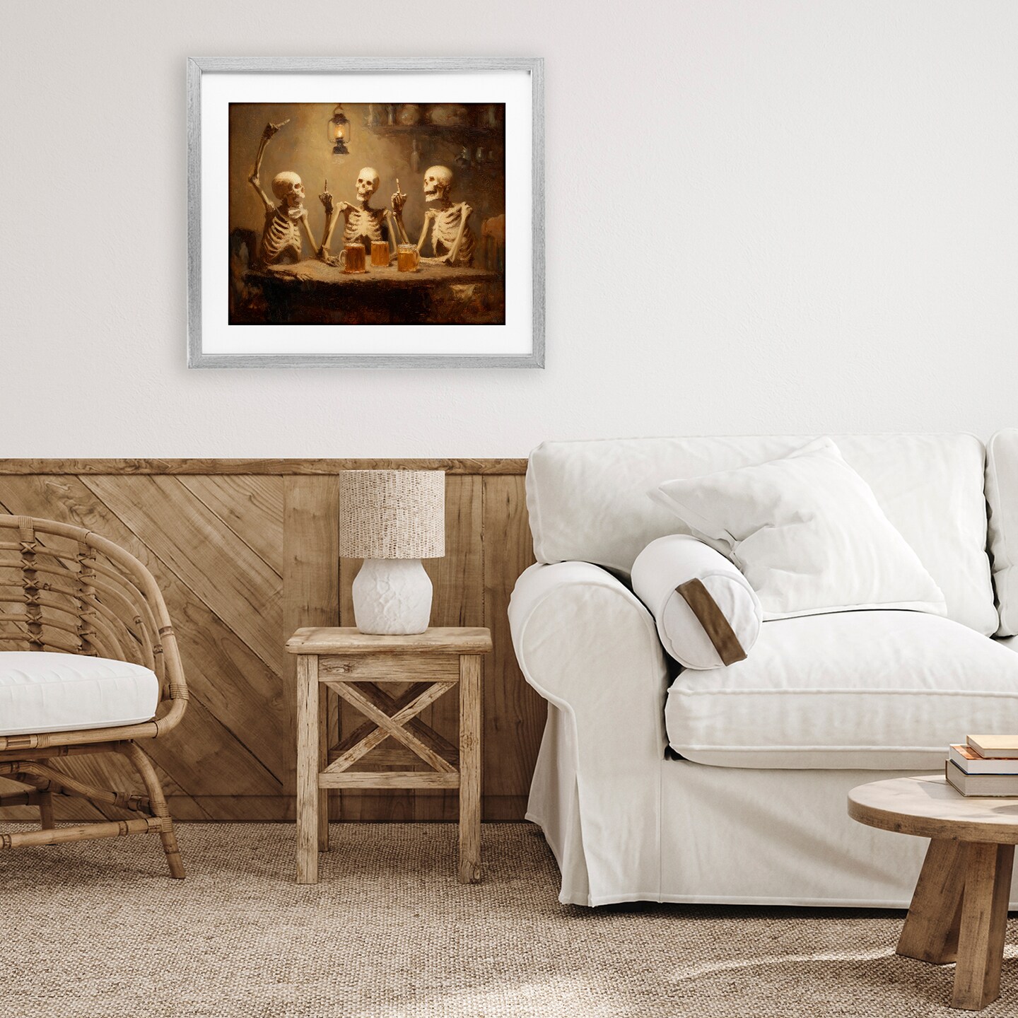 Stupell Industries Skeletons Drinking at Tavern Framed Print Under Glass, design by Arlington Prints