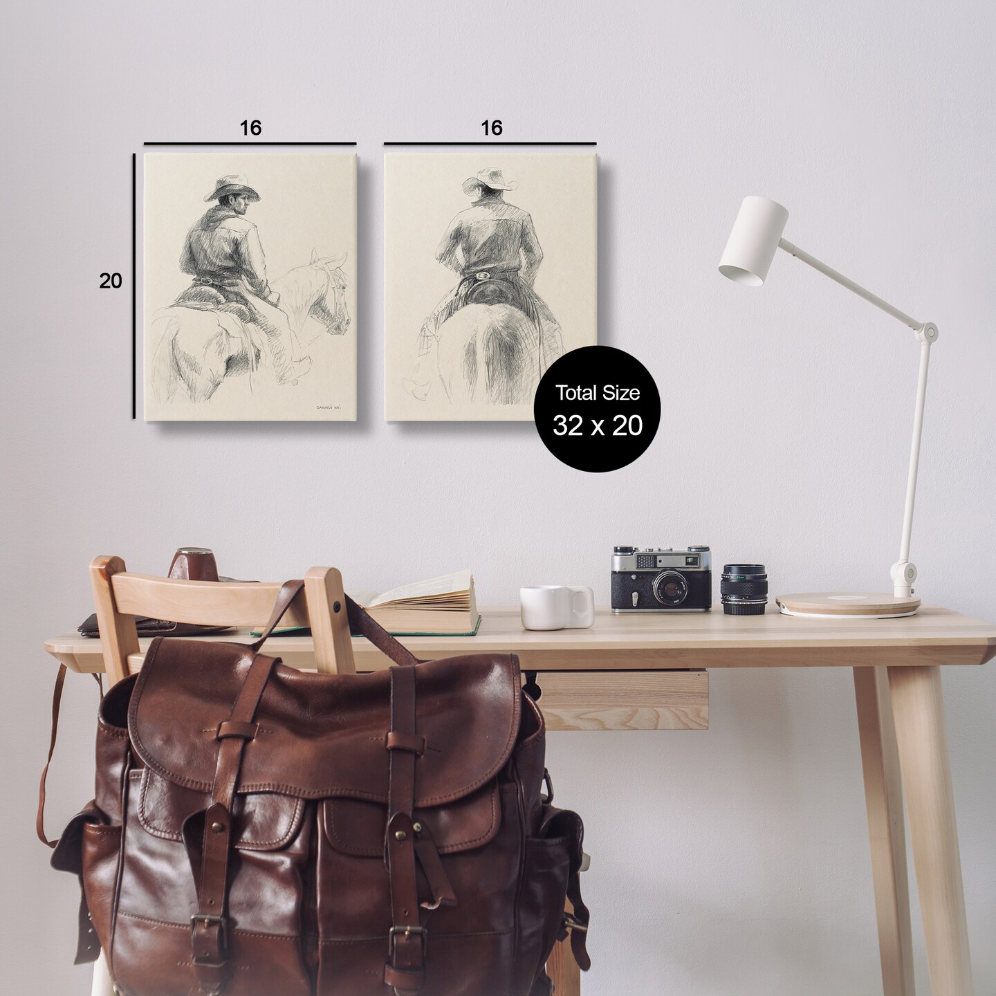 Stupell Industries Sketched Cowboy on Range 2pc Canvas Wall Art Set Design by Danhui Nai