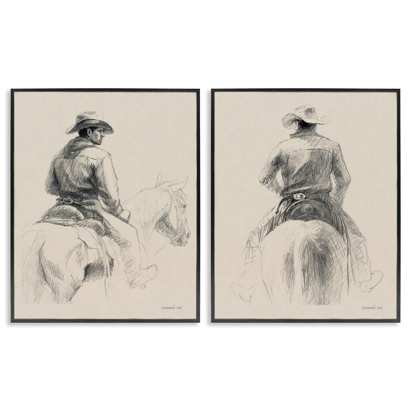 Stupell Industries Sketched Cowboy on Range 2pc Framed Giclee Wall Art Set Design by Danhui Nai