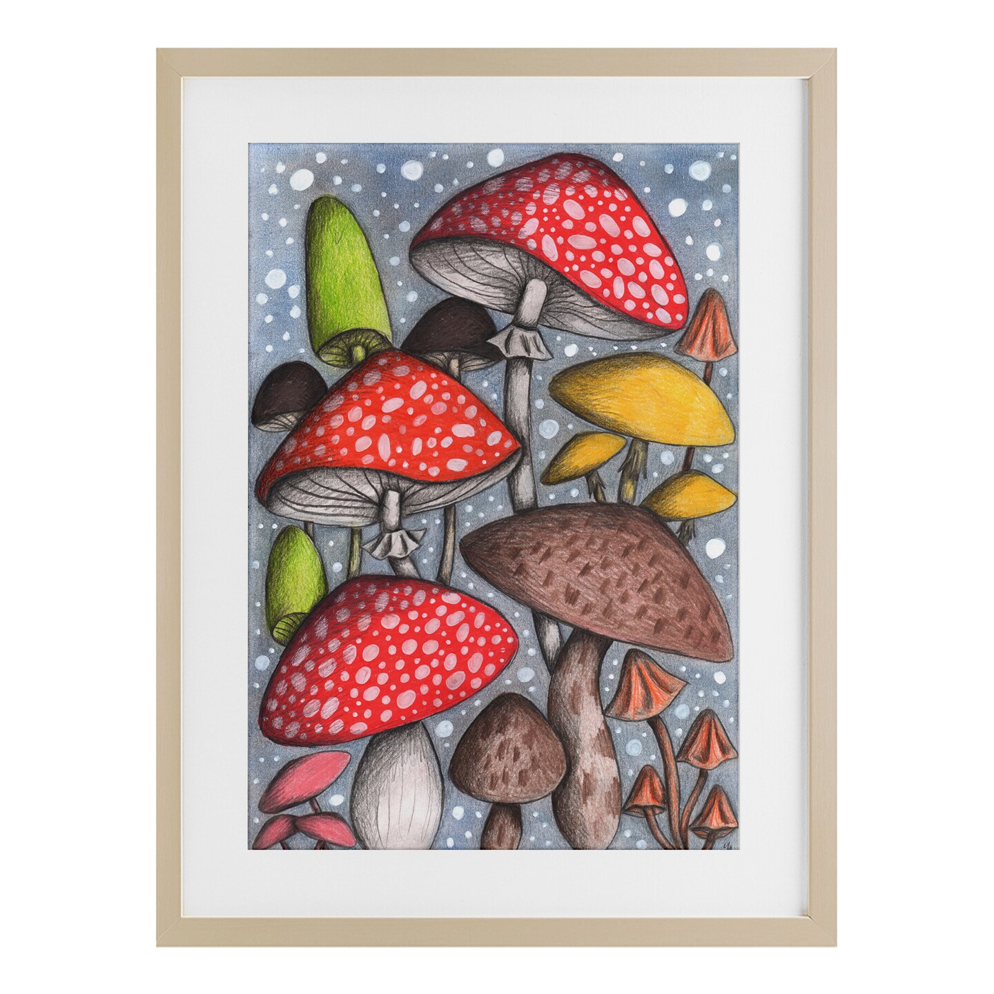 Stupell Industries Sketched Magical Mushrooms Framed Print Under Glass, design by Cecilia Battaini