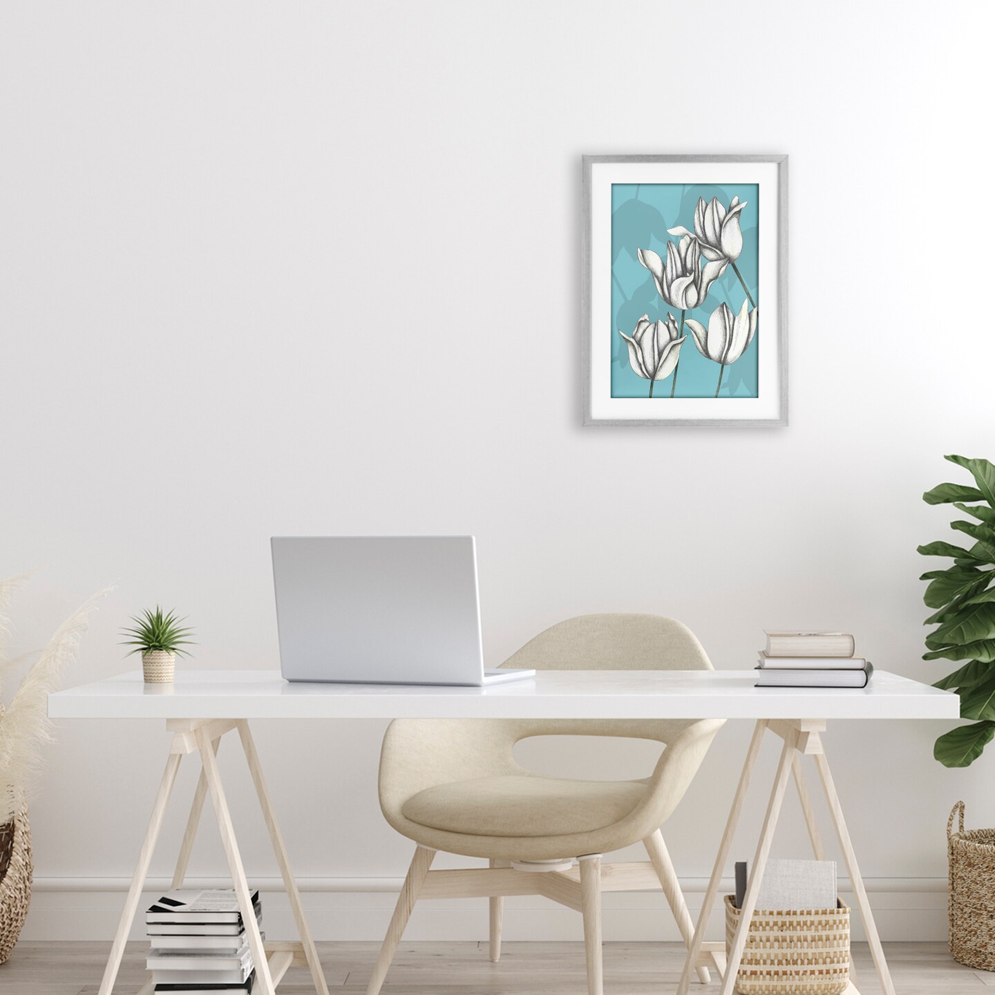 Stupell Industries Sketched Tulips Keep Growing Framed Print Under Glass, design by Cecilia Battaini